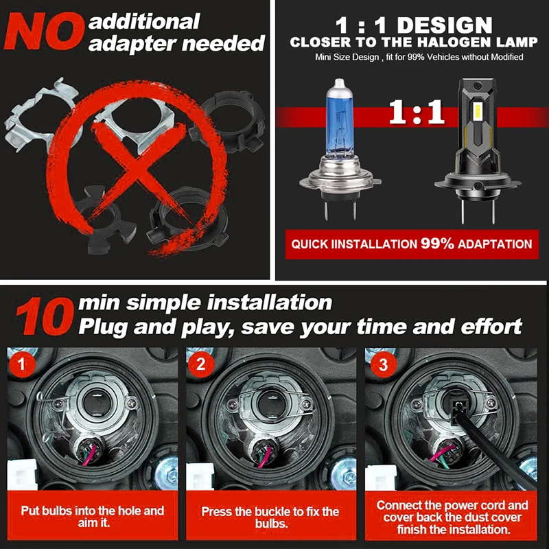 • Design 1:1 par rapport aux lampes halogènes d’origine