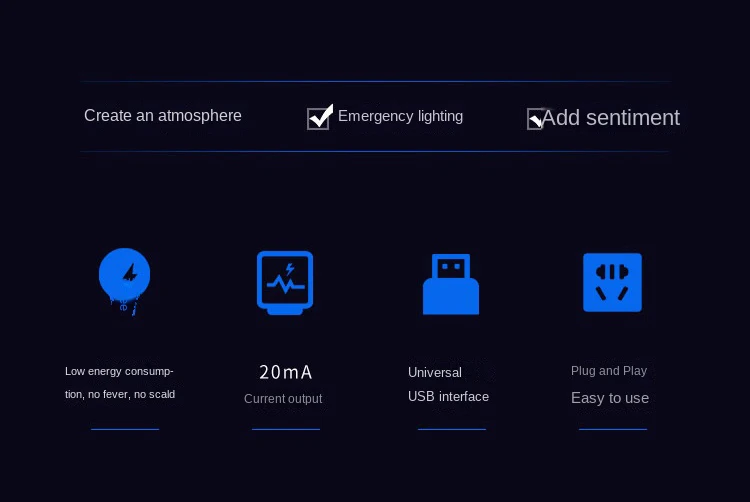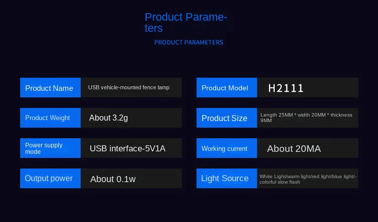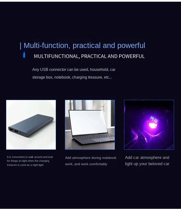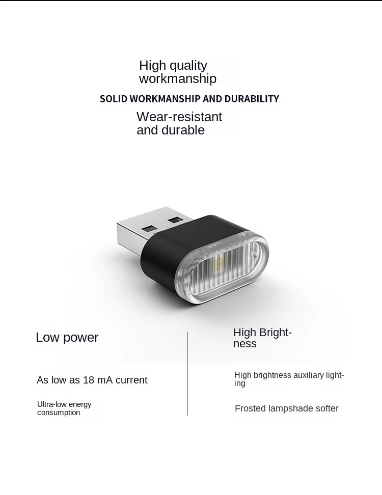 • Type de produit : Mini lumières d’ambiance LED USB pour voiture