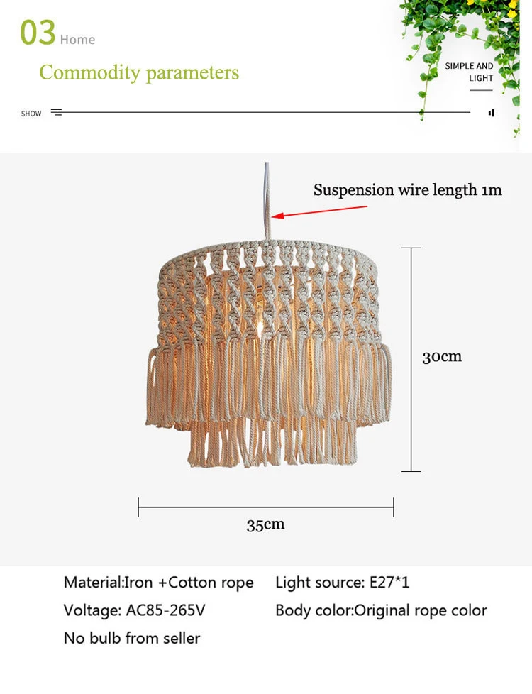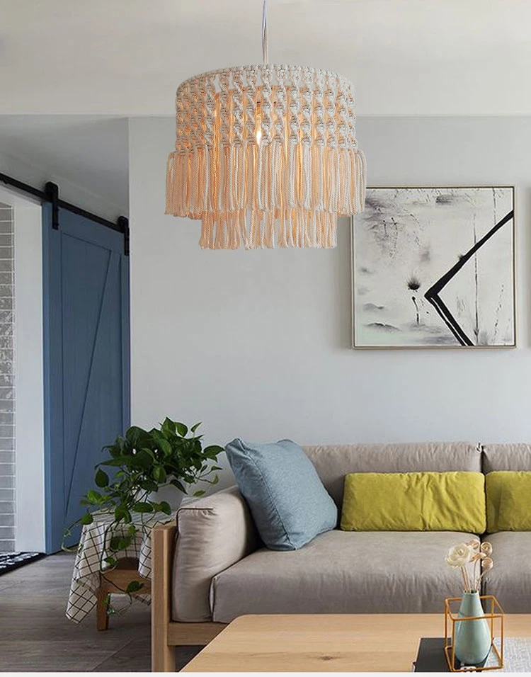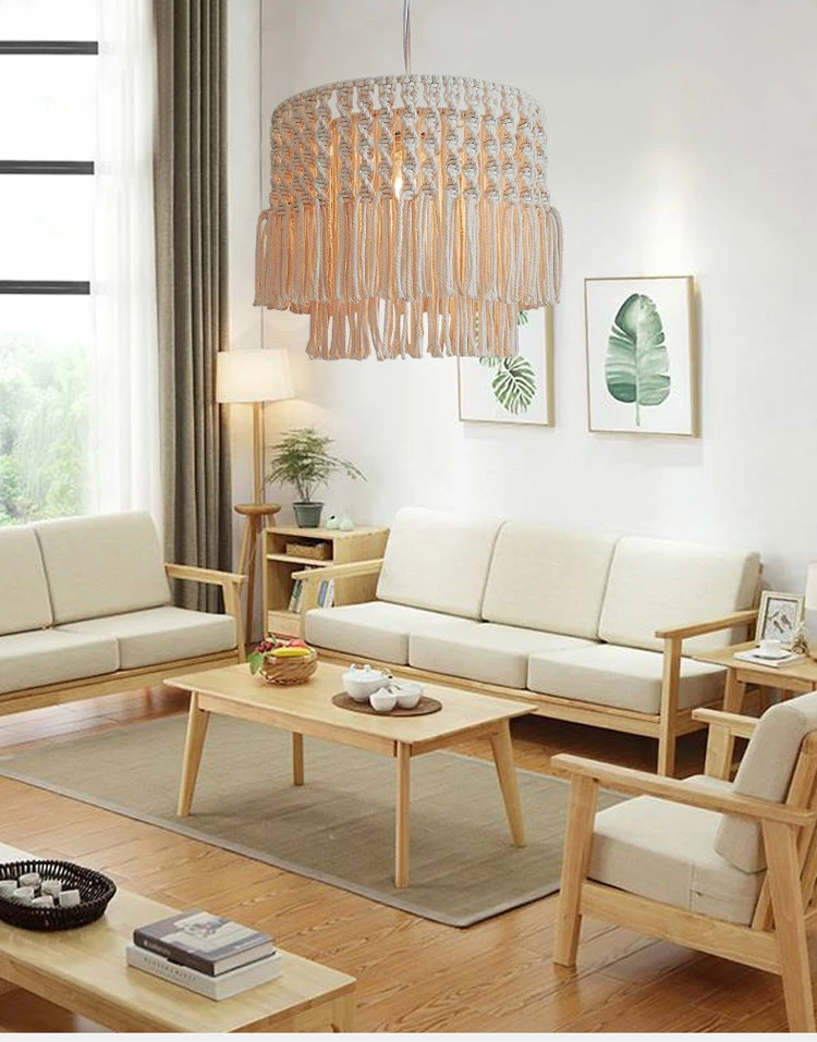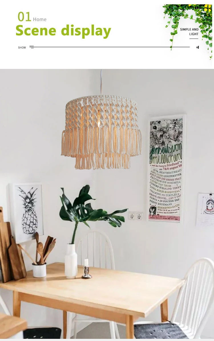 Lustre de Bohème Moderne en Corde de Coton pour Salle à Manger Lampe de Table Balcon Salon