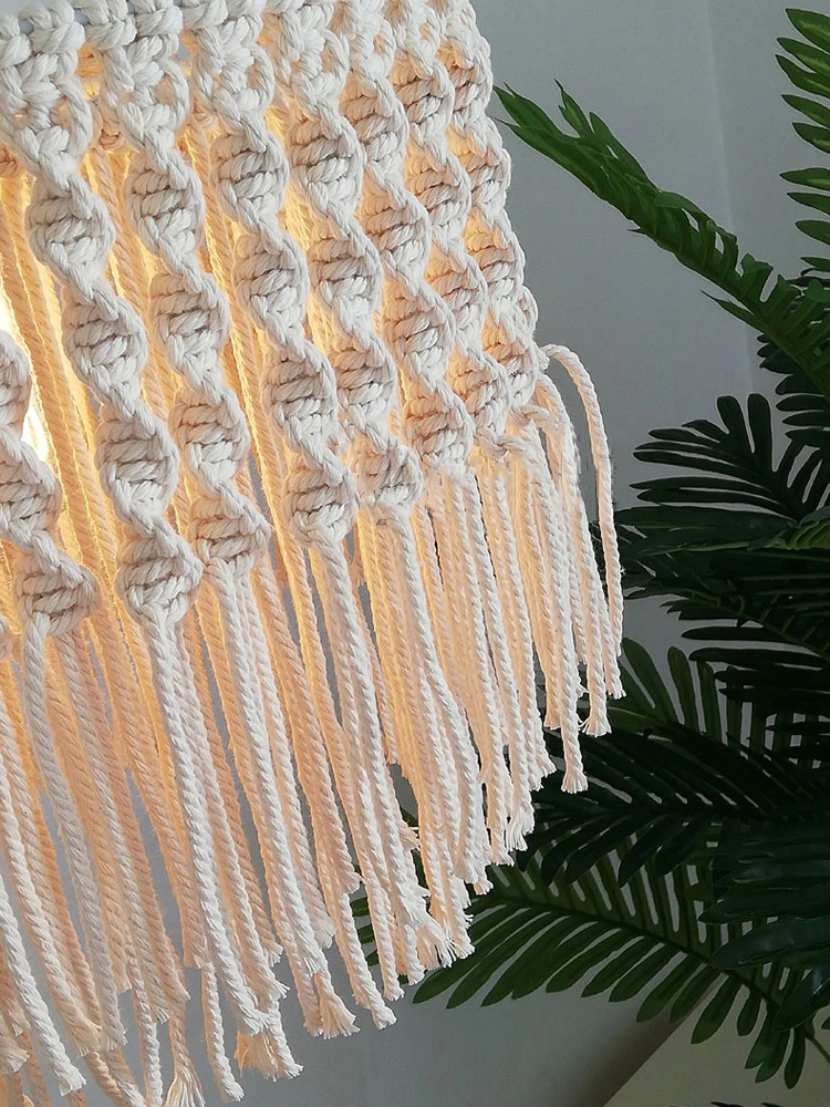 La corde de coton utilisée est de couleur naturelle, donnant un aspect authentique au luminaire.