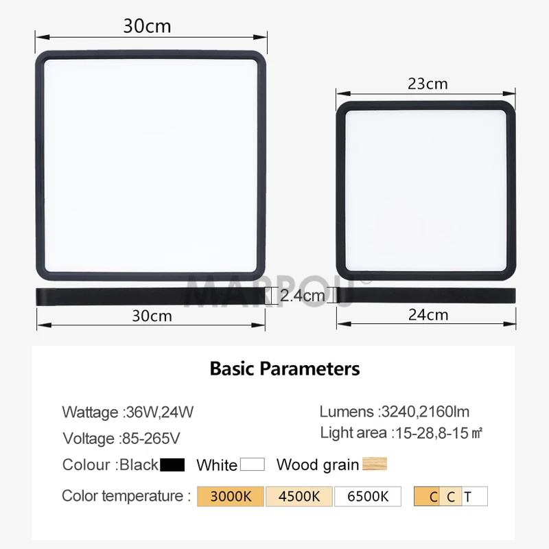 Le plafonnier LED carré ultrafin de 2.4cm MARPOU est un luminaire de plafond idéal pour un salon ou une chambre à coucher. Son design au grain de bois ajoute une touche naturelle et simple à votre intérieur.