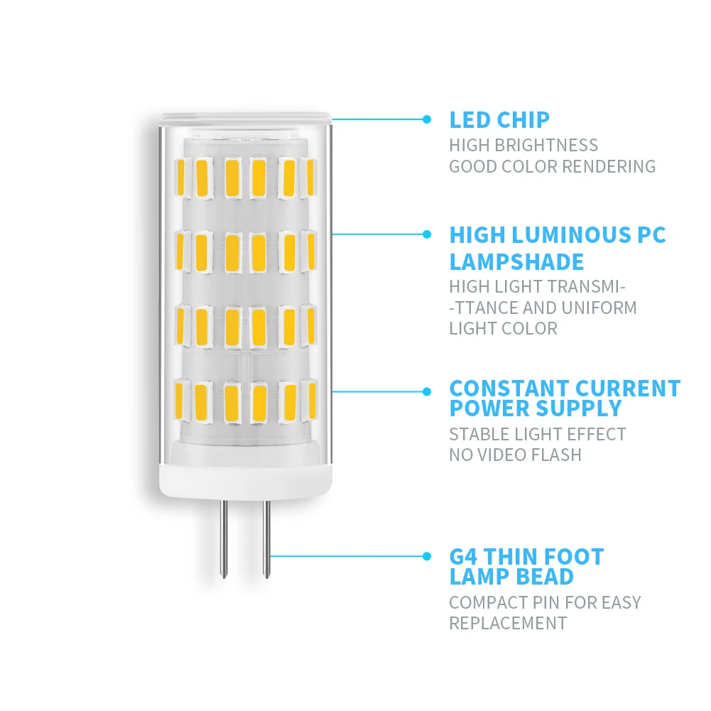 La lampe LED G4 est une ampoule en céramique épis de maïs offrant un éclairage à 360 degrés. Elle fonctionne sous une tension de 12V et a une puissance de 5W. Grâce à son angle de faisceau de 360 degrés, cette ampoule offre un éclairage omnidirectionnel. Elle ne contient pas de plomb, de mercure ni d’autres éléments de pollution, ce qui en fait une option respectueuse de l’environnement. Elle convient parfaitement aux halls, aux bars, aux bureaux et aux maisons.