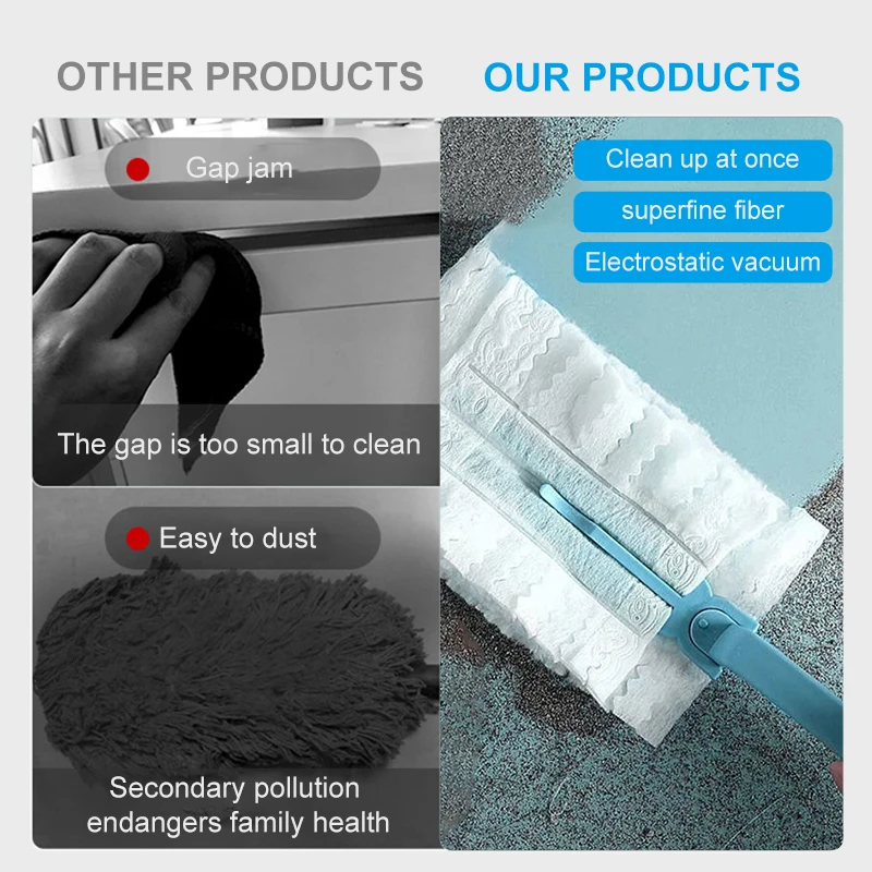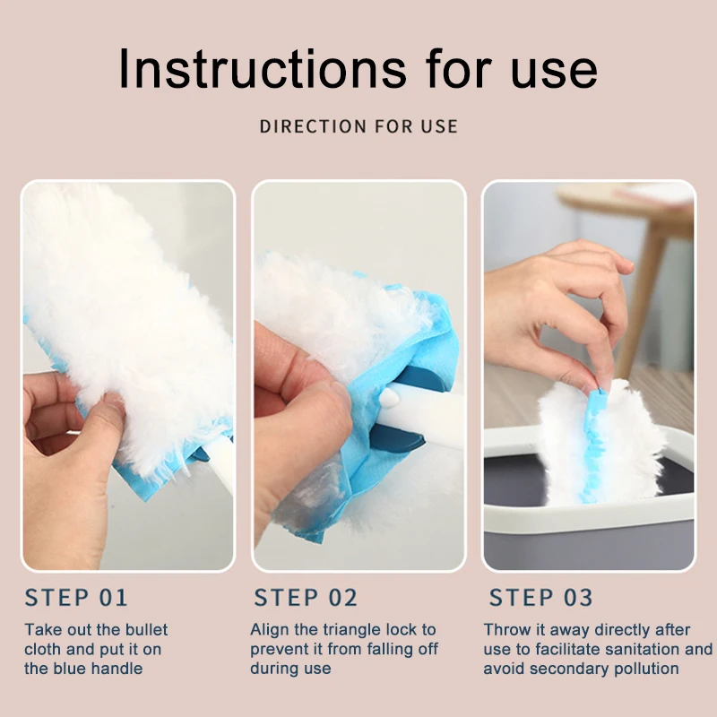 Utilisez un dépoussiéreur à adsorption électrostatique pour dire adieu à divers problèmes gênants! Le dépoussiérage électrostatique ne recueille pas la poussière. Jeter après utilisation, éviter la pollution secondaire, plus hygiénique.