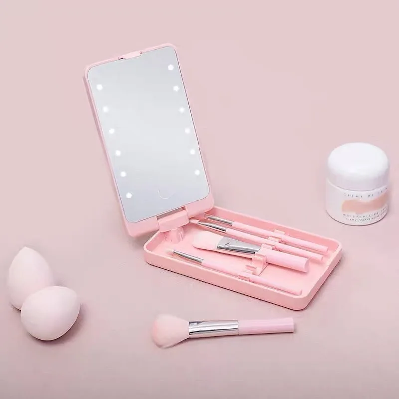 | Caractéristiques | Miroir LED rotatif à 360°, ensemble de pinceaux, portable, tactile, poche rectangulaire, miroirs pliants |
