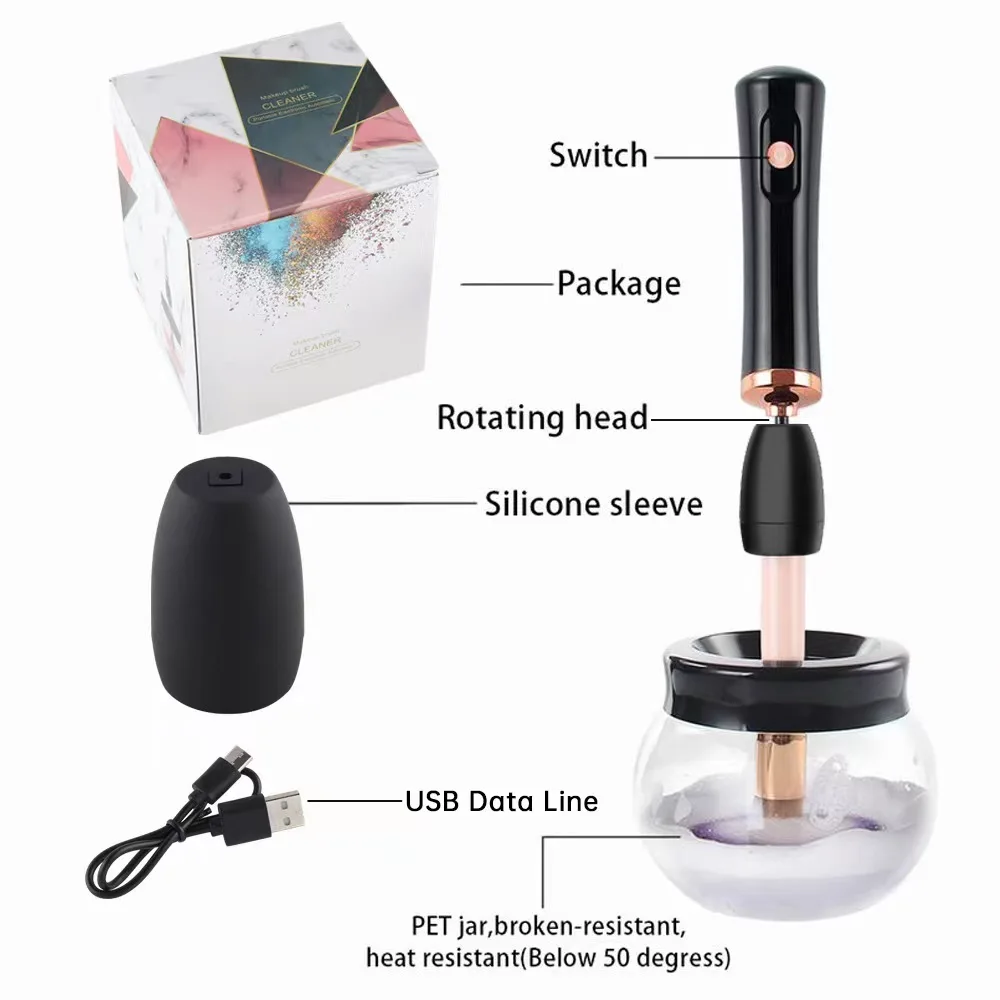 | Charge USB/Batterie Outil de maquillage professionnel Nettoyeur de brosse Machine à secouer la colle Séchage rapide et efficace Brosse et nettoyage de la colle |