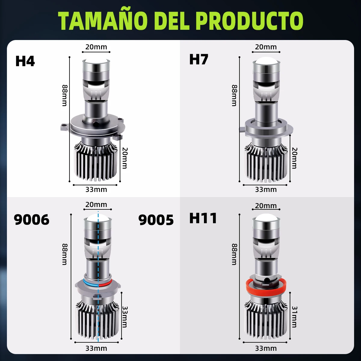 - Modèle de lampe: H7/H8/H9/H11/H16(JP)/9005/HB3/9006/HB4 H4 Led lentille pour phare