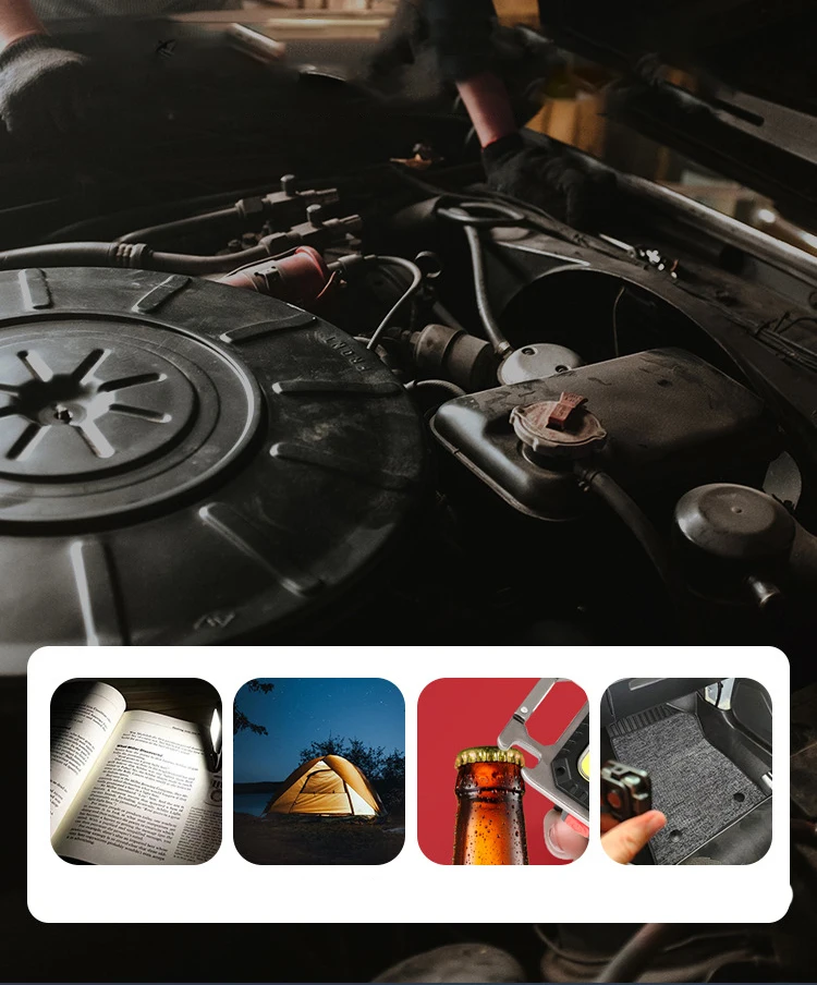 Elle est idéale pour la réparation de voiture de nuit, la marche, les pannes de courant, le camping, la lecture de nuit, l’ouverture de bouteille de vin, etc.