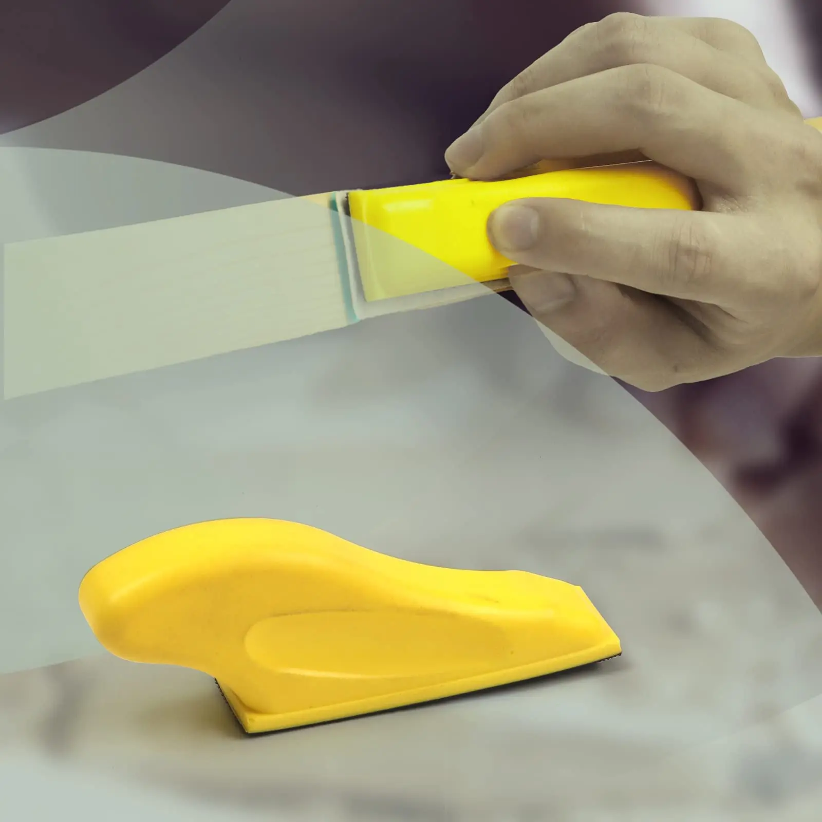 La micro ponceuse est faite de mousse de polyuréthane, elle est légère, de dureté modérée, assez souple pour être confortable mais assez dure, élastique, de forme manuelle, de prise en main confortable, petite ponceuse de détail peut entrer dans les espaces restreints et faire de plus grandes surfaces rapidement.