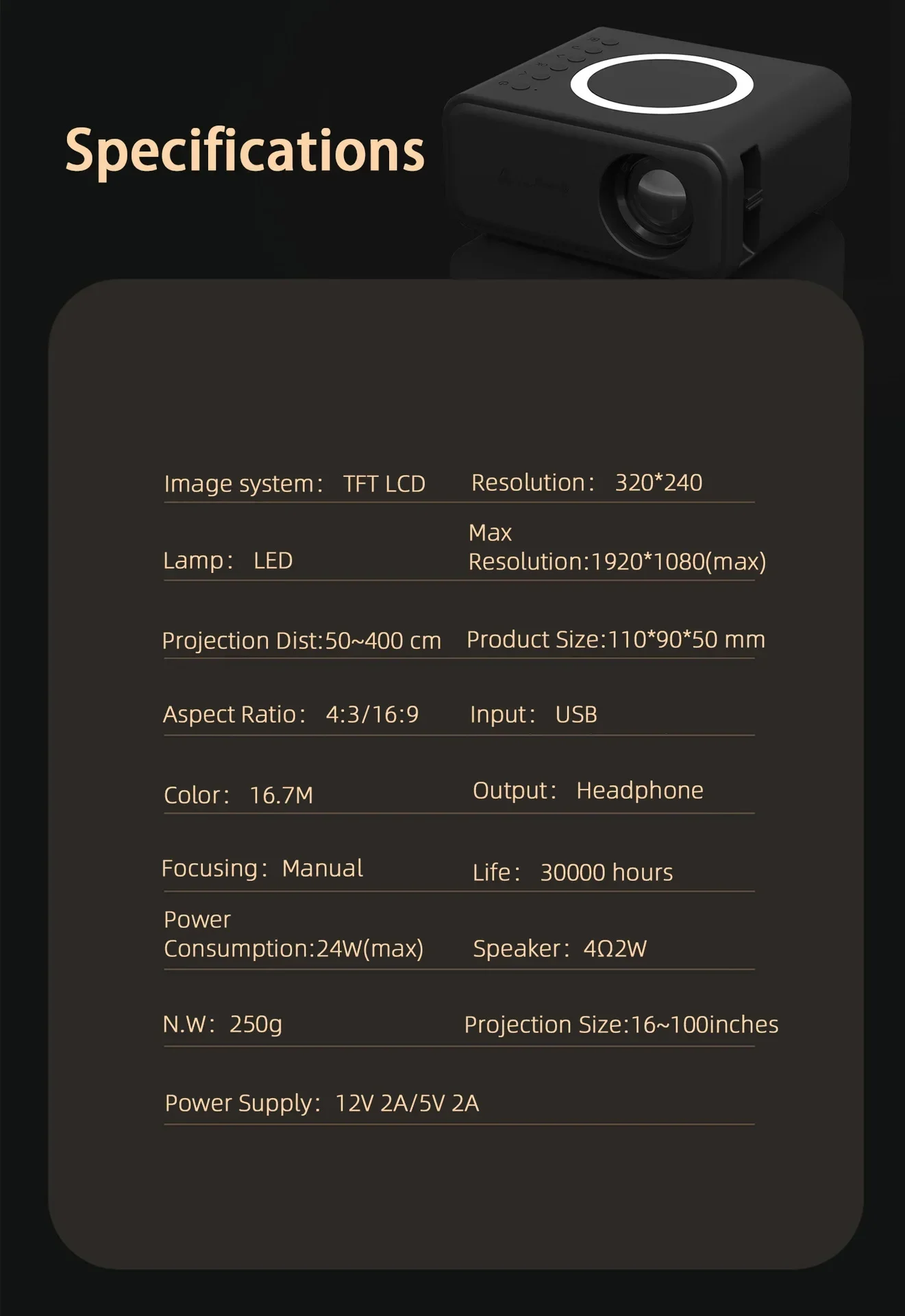 - Mini projecteur portable avec fonctionnalité Smart TV et connexion Wifi