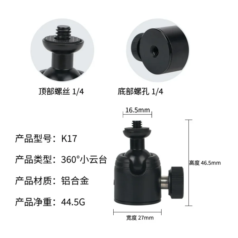 | Description | Mini rotule pour appareil photo 360, tête expresse, trépied, support de téléphone, adaptateur de montage monopode pour appareil photo reflex numérique, trépied flash |