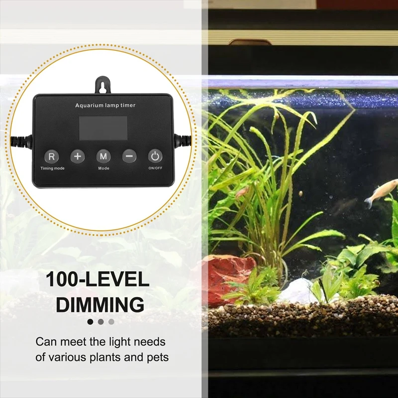 Il combine également une minuterie et un variateur en un seul appareil, ce qui vous permet de simuler différents niveaux de luminosité pour recréer les conditions naturelles. Vous pouvez régler la luminosité librement pour donner à vos poissons un style de vie régulier en simulant le lever et le coucher du soleil.