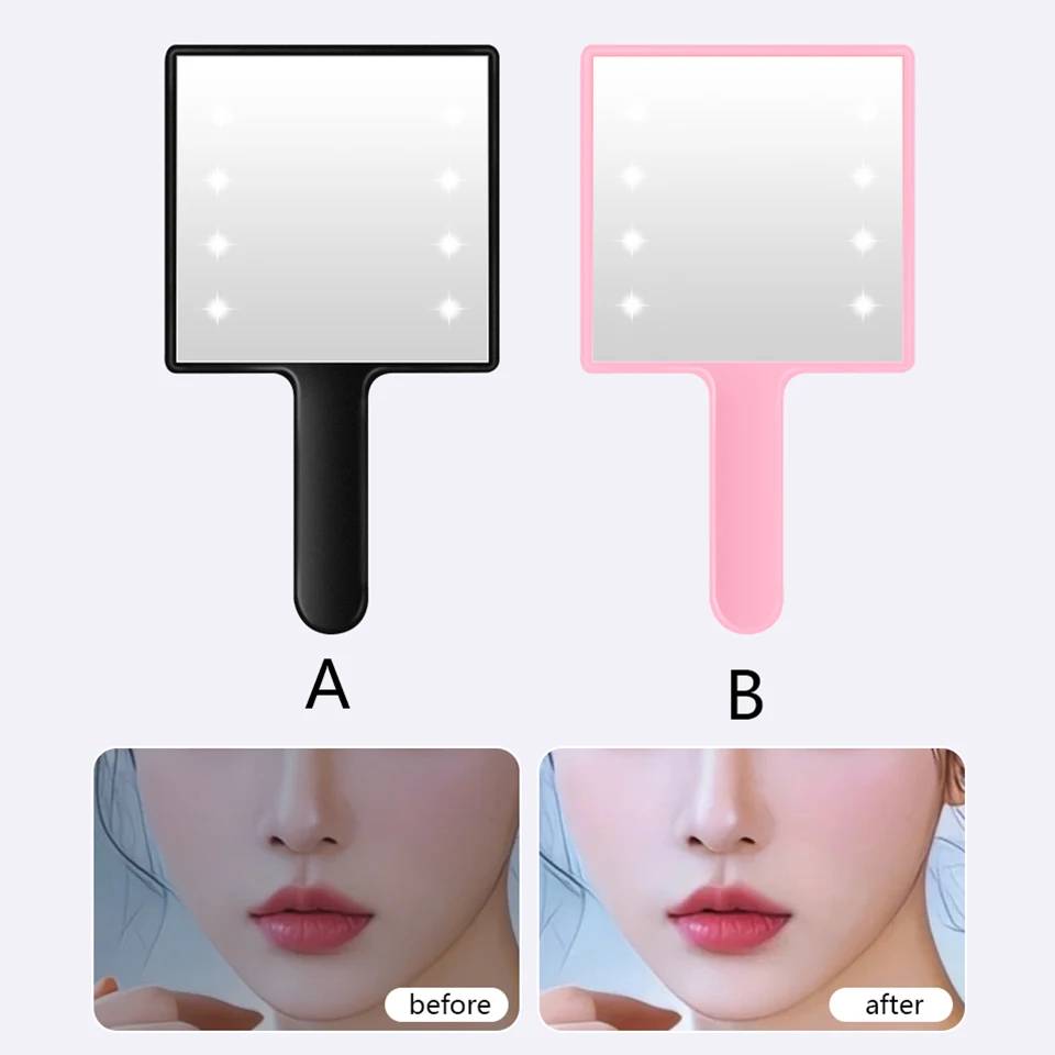 Convient pour la maison quotidienne, SPA, salon, salle de bain et chambre à coucher. Le matériau du miroir est en plastique et la lentille est en verre. Il est compact et portable, léger et facile à transporter. Équipé de 8 perles de lumière LED, avec un interrupteur manuel à l’arrière du miroir. Idéal comme cadeau de vacances pour les filles et les femmes, et parfait pour les voyages.