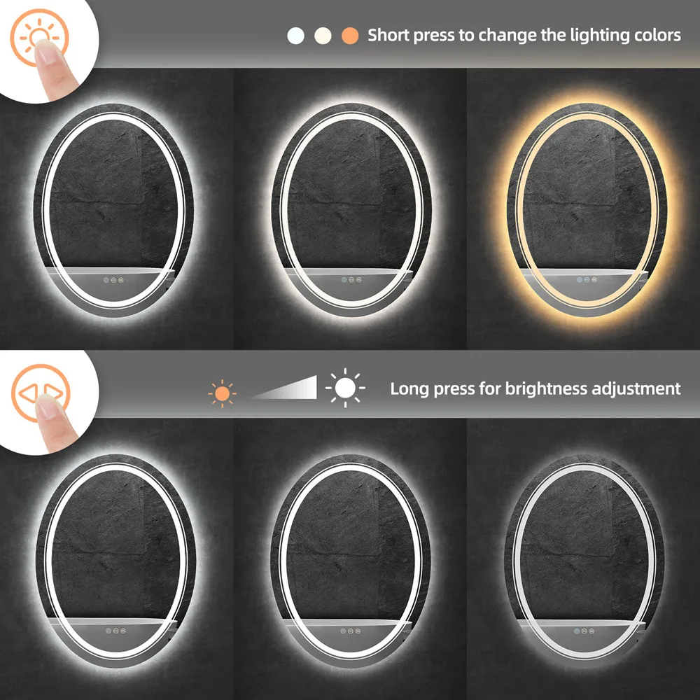 Le miroir est doté d’une bande LED qui offre un éclairage blanc, chaud ou naturel, selon vos préférences. Cette fonctionnalité est idéale pour vous donner une lumière adaptée lorsque vous vous maquillez ou vous préparez le matin. De plus, le miroir est anti-buée, ce qui vous permet d’utiliser le miroir même dans un environnement humide comme la salle de bain.