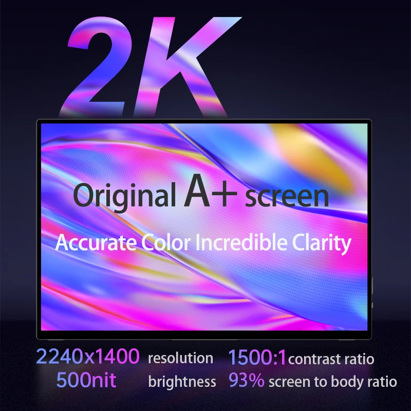 Moniteur portable VCHANCE 14 pouces 2.2K 2240*1400p 16:10 100% DCI-P3 bureau voyage écran de jeu pour ordinateur portable PC Xbox Switch ps5 Mac