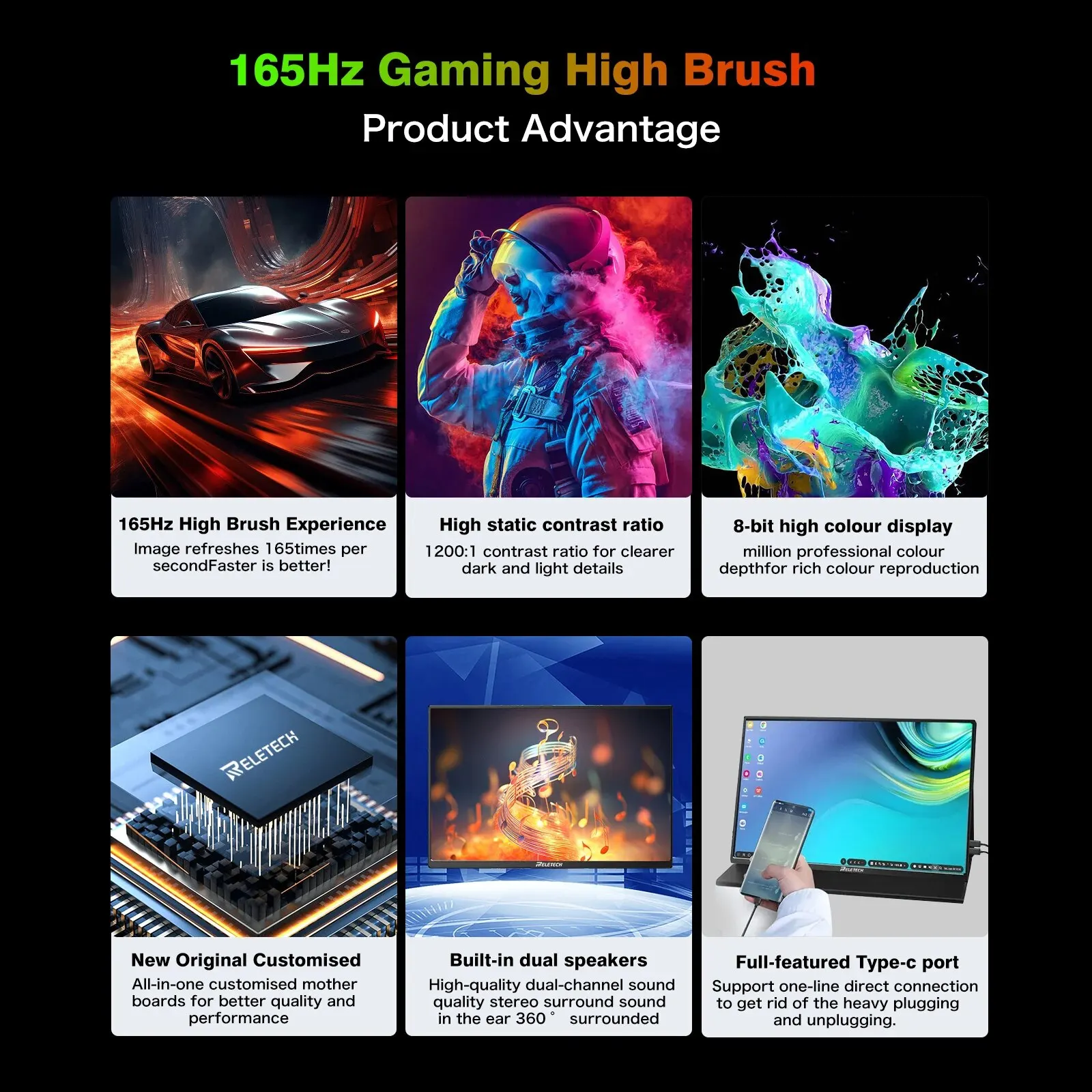 - 165Hz dépend du modèle de carte graphique d’ordinateur portable/pc, veuillez confirmer avant l’achat.