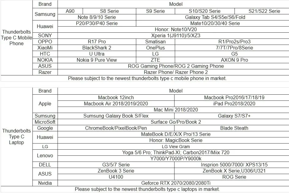 Compatible pour le téléphone et l’ordinateur portable Thunderbolts via connexion TYPE C