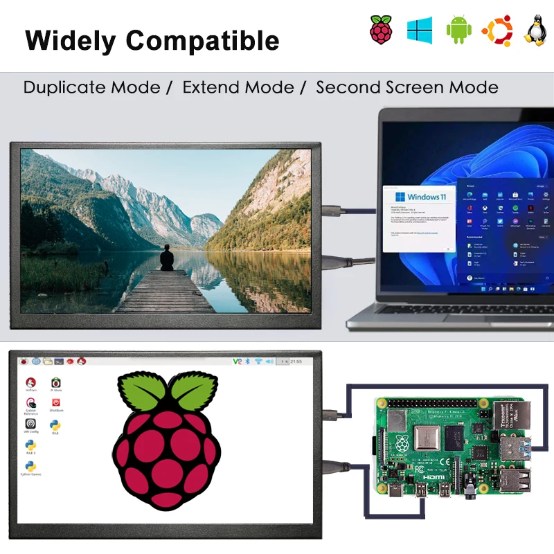 Le moniteur à écran tactile portable est doté d’un écran LCD de 10 pouces avec une résolution de 1024×600. Il dispose d’un panneau IPS offrant un angle de vue de 170 degrés. La coque en aluminium lui confère une grande robustesse. Ce moniteur peut être utilisé comme un écran secondaire pour PC, offrant une expérience visuelle haute définition.