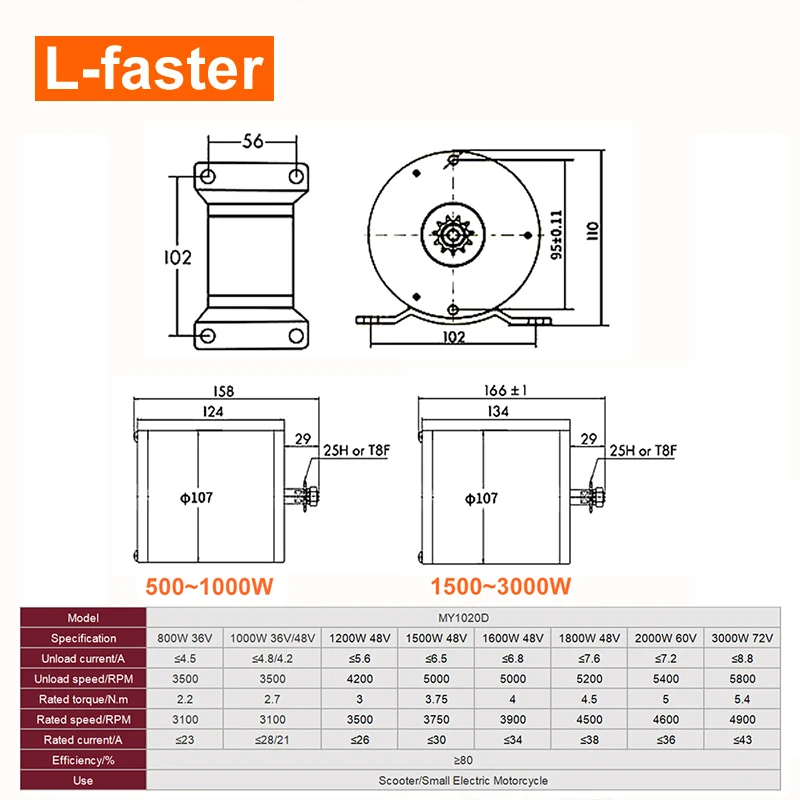 - Pignon: 11 dents, adapté à la chaîne #25H (nous fournirons un pignon T8F en cadeau)
