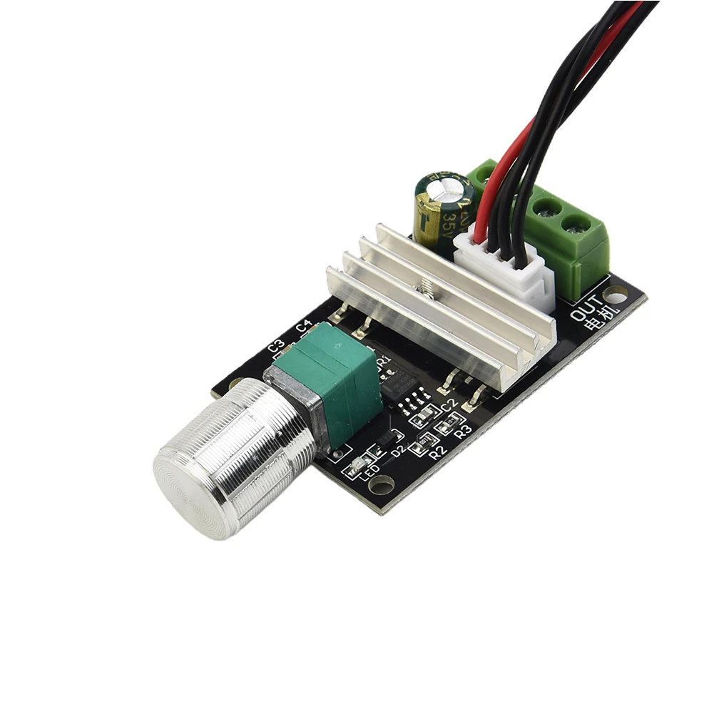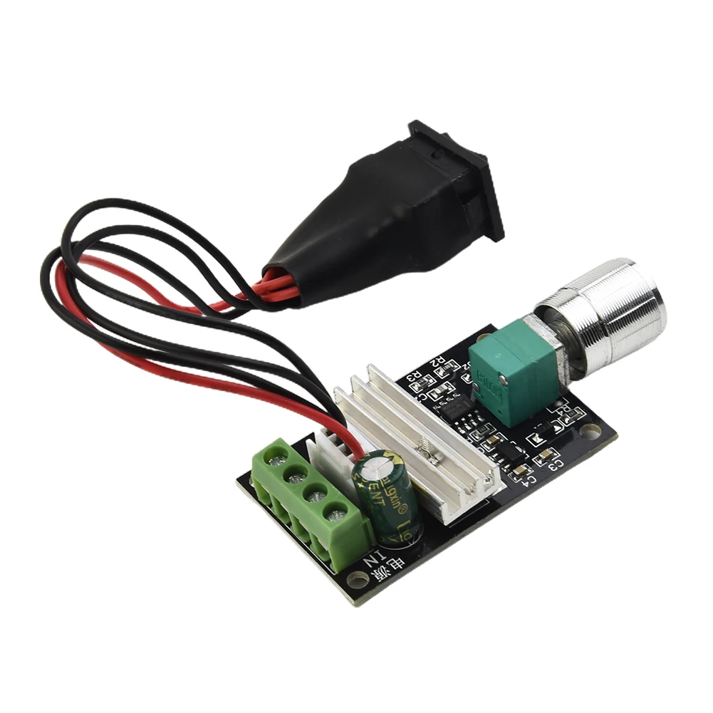 Ce régulateur de vitesse de moteur en métal de haute qualité est un outil fiable et durable pour ajuster la vitesse de votre moteur. Grâce à son bouton de réglage, vous pouvez facilement modifier la sortie et ainsi contrôler la vitesse du moteur brosse. L’utilisation du potentiomètre avec fonction de commutation permet de gérer facilement les mouvements avant, arrière et l’arrêt du moteur à courant continu. Les LED incluses indiquent clairement la mise sous tension et la vitesse du moteur. Ce régulateur est compatible avec un large éventail de tensions d’entrée, de 6V à 28V, ce qui le rend polyvalent et adapté à de nombreuses applications.