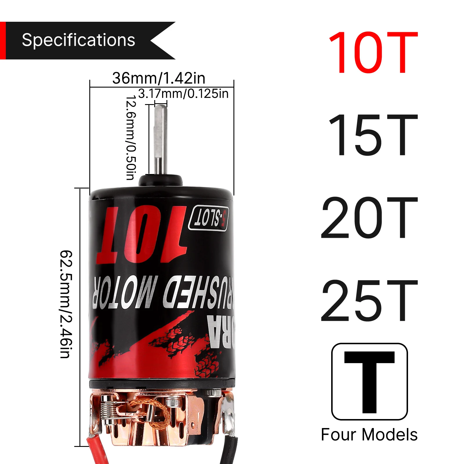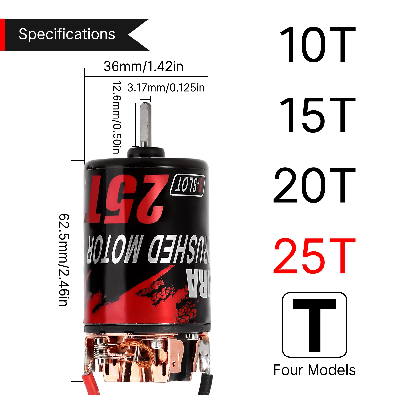 - Longueur du corps du moteur: 62.5mm (2.46in)