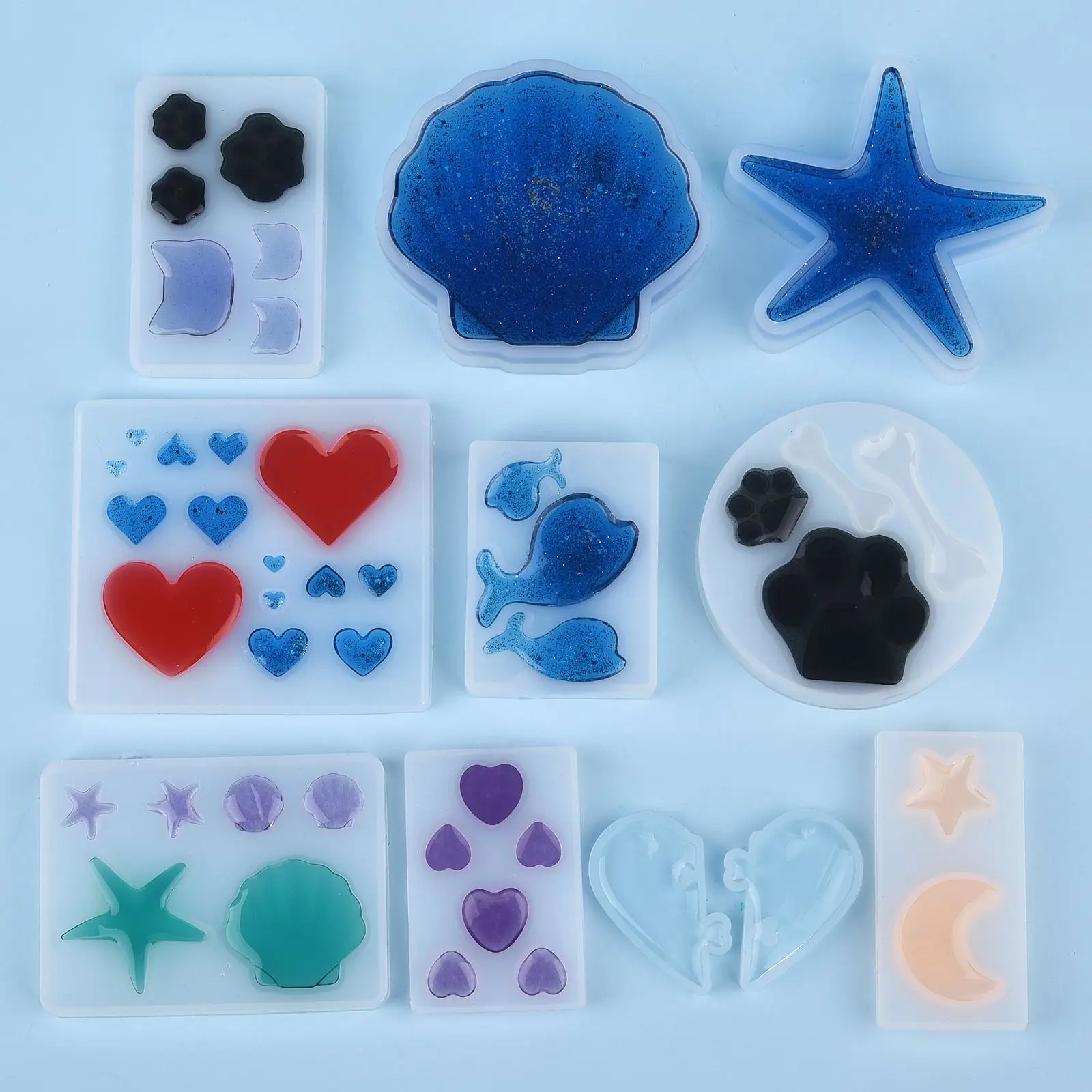 | Silicone | Translucide | Moule à griffes pour chaton – 8.5*6.7cm Moule Love – 7.2*5.1cm Moule lune et étoile – 8.1*4.5cm Moule d’amour fendu – 6.5*4.7cm Trois moules dauphin – 6.1*4.5cm Moule en silicone pour coquille d’étoile de mer – 8.5*6.1cm Moule silicone os de patte d’ours 02 – 7.5cm de diamètre Moule de collection en forme de cœur multi-tailles – 8.9*7.8cm Moule étoile de mer miroir – 8.5*6cm Moule de coquille de miroir – 8.5*8cm |