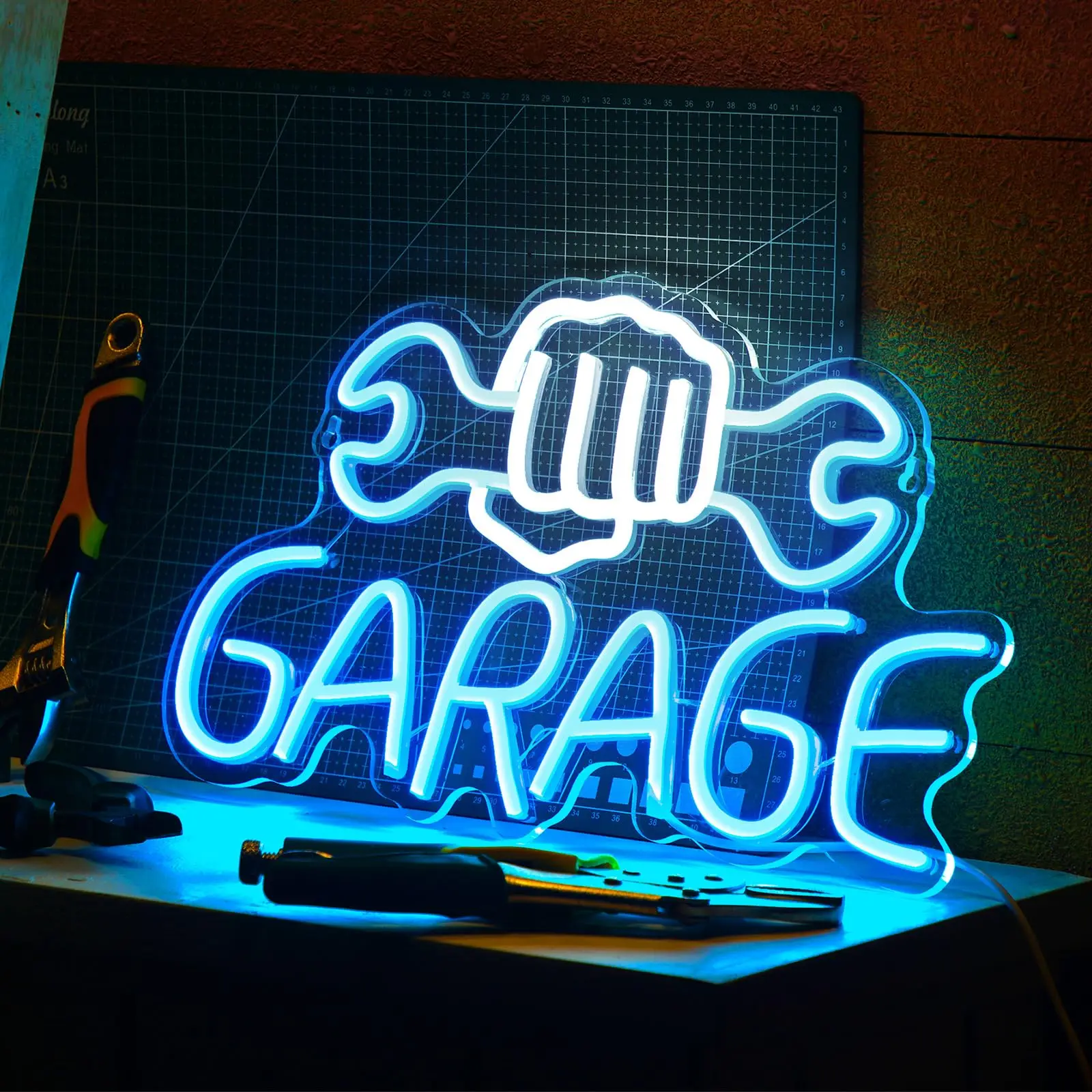 Nous pensons que cette enseigne au néon de garage à LED en forme blanche et bleue est idéale pour la décoration murale, la diversification des hommes, les portes de garage et les ateliers de réparation automobile. Les lumières LED vibrantes ajoutent une touche festive et la conception acrylique élégante la rend parfaite pour créer une ambiance attrayante lors des fêtes ou comme décoration élégante.