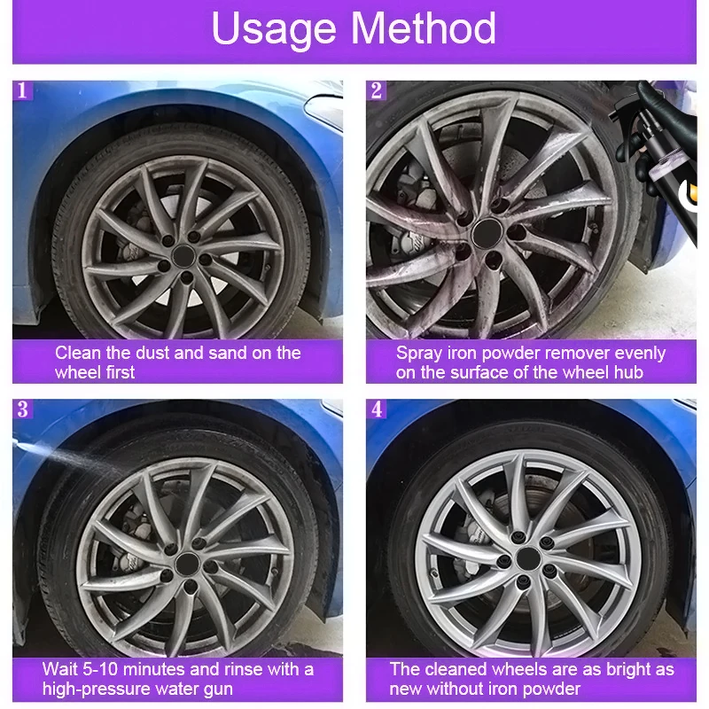 Enlevez facilement la rouille et la poussière du fer. Le dépoussiéreur de rouille et de poussière du fer peut facilement enlever la poussière de frein sur la roue et les taches de rouille sur la peinture, qui ne peuvent pas être enlevées avec un autre nettoyant. Restaurez la couleur d’origine de votre voiture.