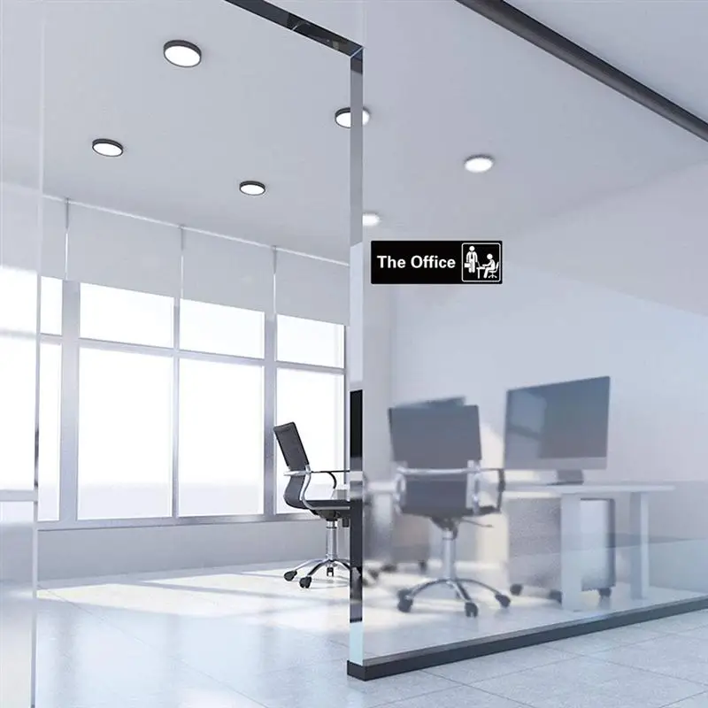 Les panneaux de bureau en lettres anglaises, noir et blanc, sont fabriqués en acrylique auto-adhésif. Ils mesurent 22,8×7,5 cm et sont vendus à l’unité. Ces panneaux peuvent être utilisés comme étiquettes murales ou porte pour fournir des informations importantes dans un espace public.