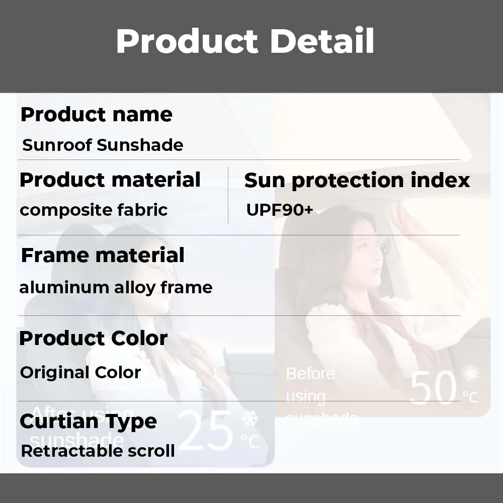 | Pare-soleil de voiture d’origine | Permet un défilement d’ombre de lucarne |