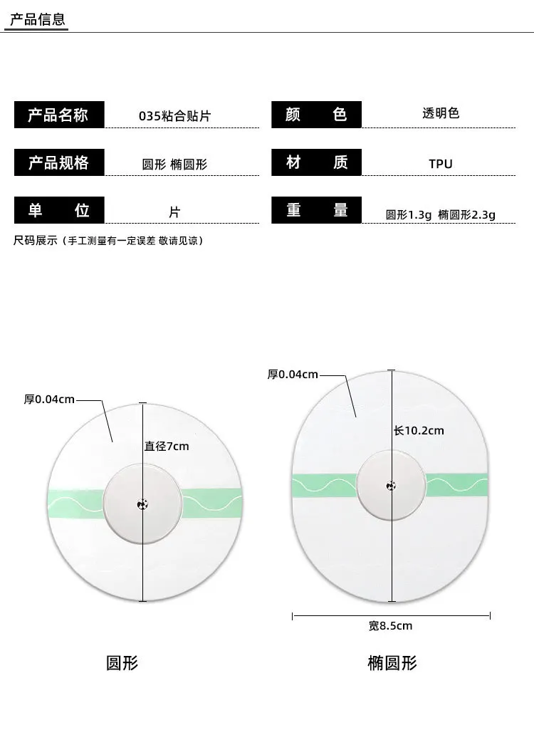 - Taille ovale : 10.2*8.5*0.04cm