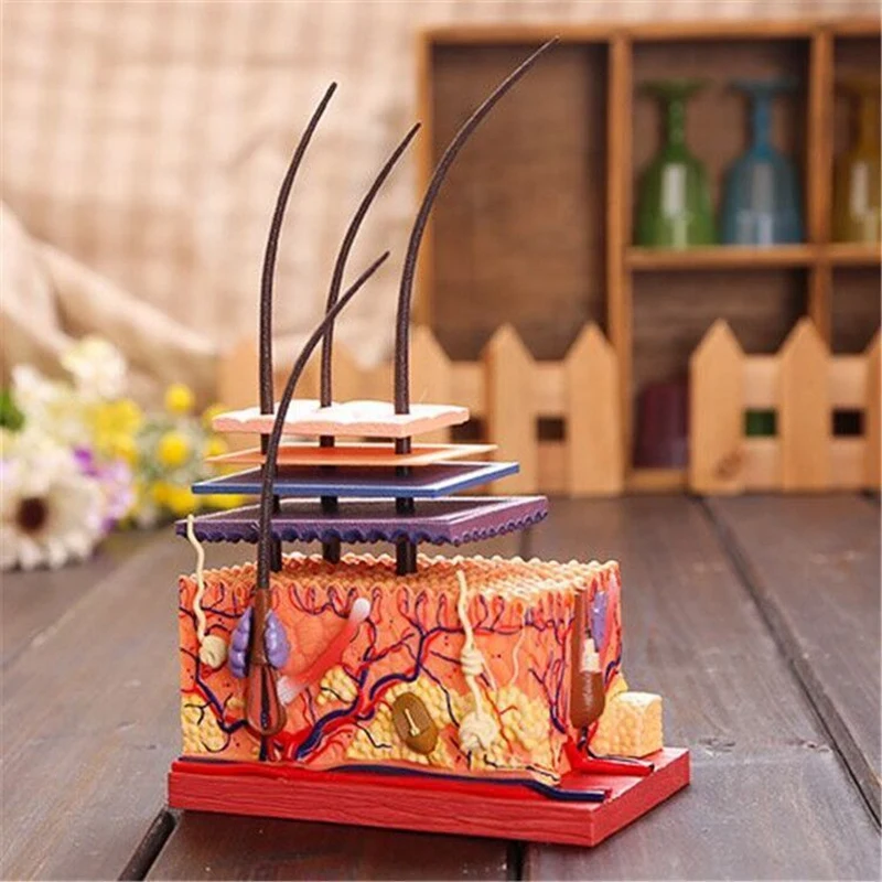 Ce modèle est livré avec un guide d’assemblage illustré et une description détaillée de l’anatomie de la peau. Il est fabriqué à partir de plastique respectueux de l’environnement et est peint à la main avec des couleurs vives pour représenter presque de façon réaliste la structure de la peau humaine.
