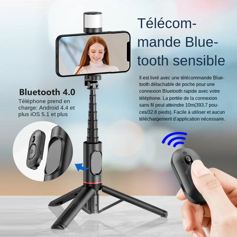 La Perche à selfie télescopique portable avec lumière d’appoint, trépied sans fil, Bluetooth est le compagnon idéal pour capturer des selfies de qualité professionnelle. Avec sa fonction Bluetooth, elle vous permet de prendre des photos à distance sans avoir à tenir votre téléphone. Vous pouvez profiter de la liberté de mouvement tout en obtenant des angles de prise de vue parfaits.