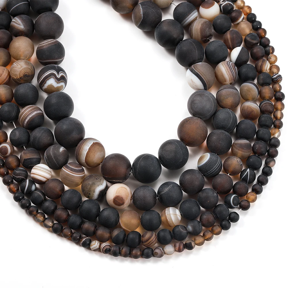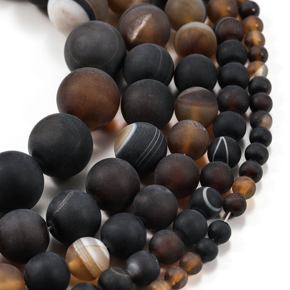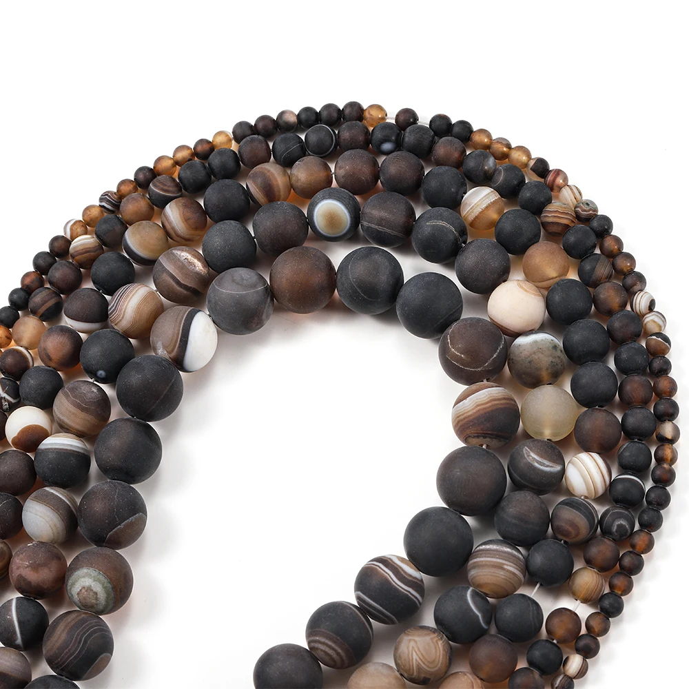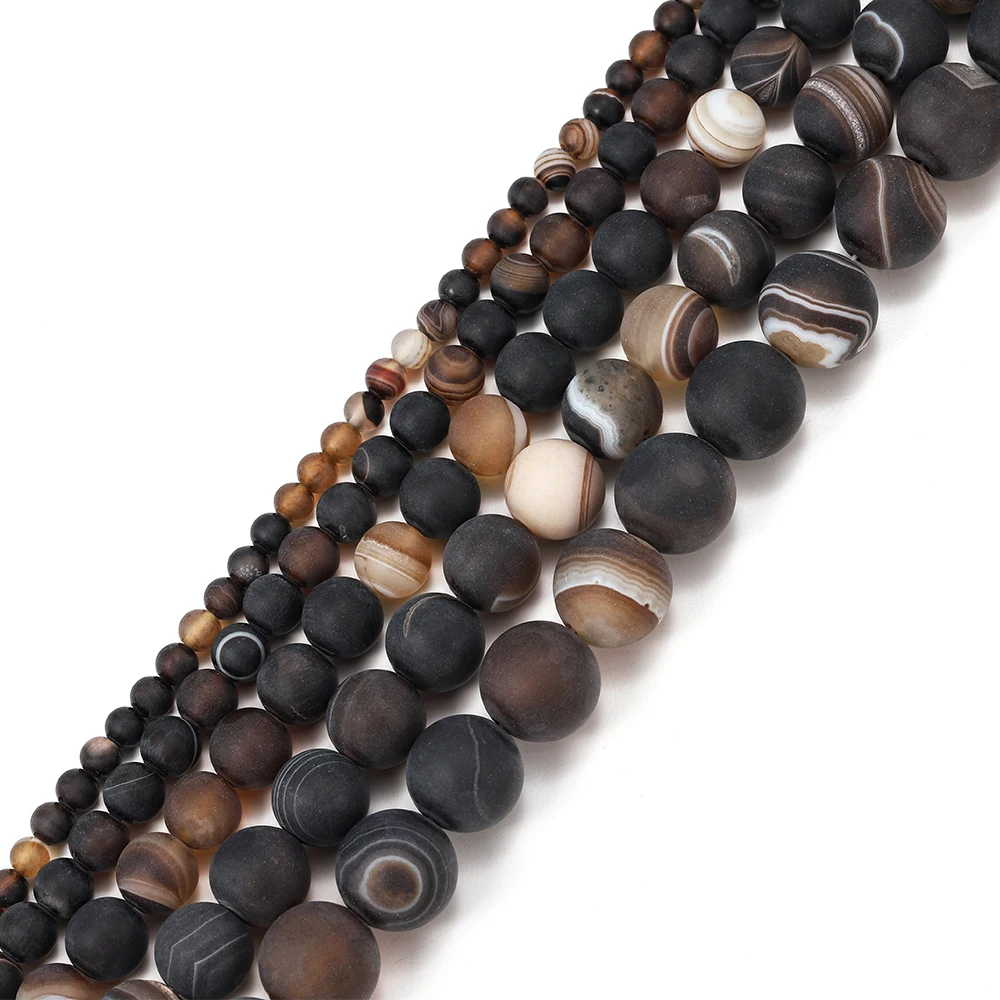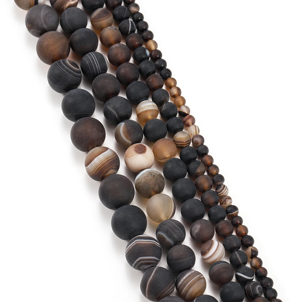 Ce produit est un brin de perles d’agates en pierre naturelle matte à rayures café. Les perles d’espacement sont de couleur marron naturel et sont utilisées pour la fabrication de bijoux tels que les bracelets. La taille des perles peut être choisie en fonction de vos besoins.