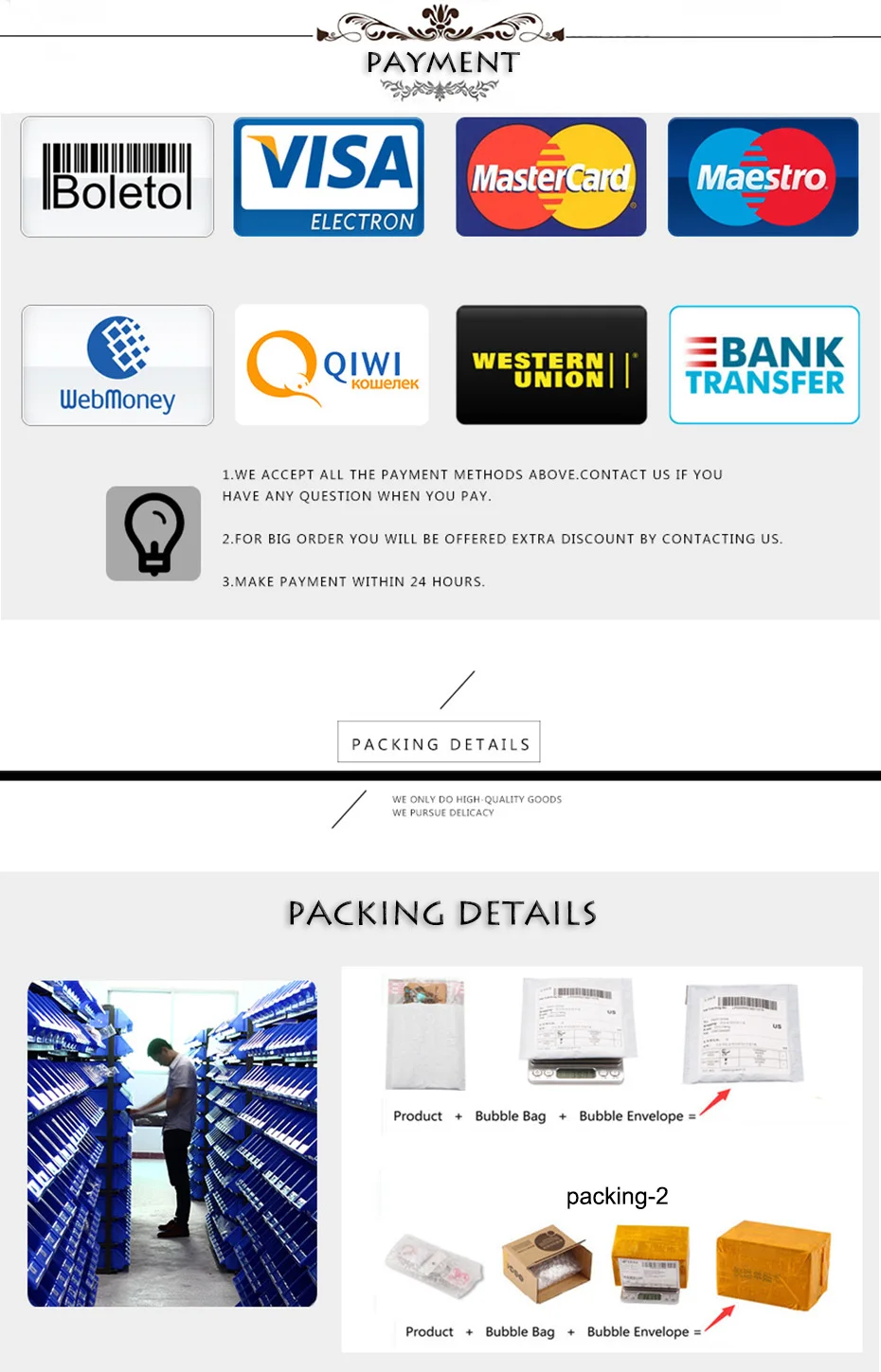 2. Veuillez comprendre qu’en raison de l’exposition à la lumière ou de la différence d’affichage de l’ordinateur, je ne peux donc pas garantir que les photos et la couleur réelle sont 100% les mêmes.