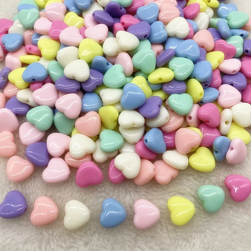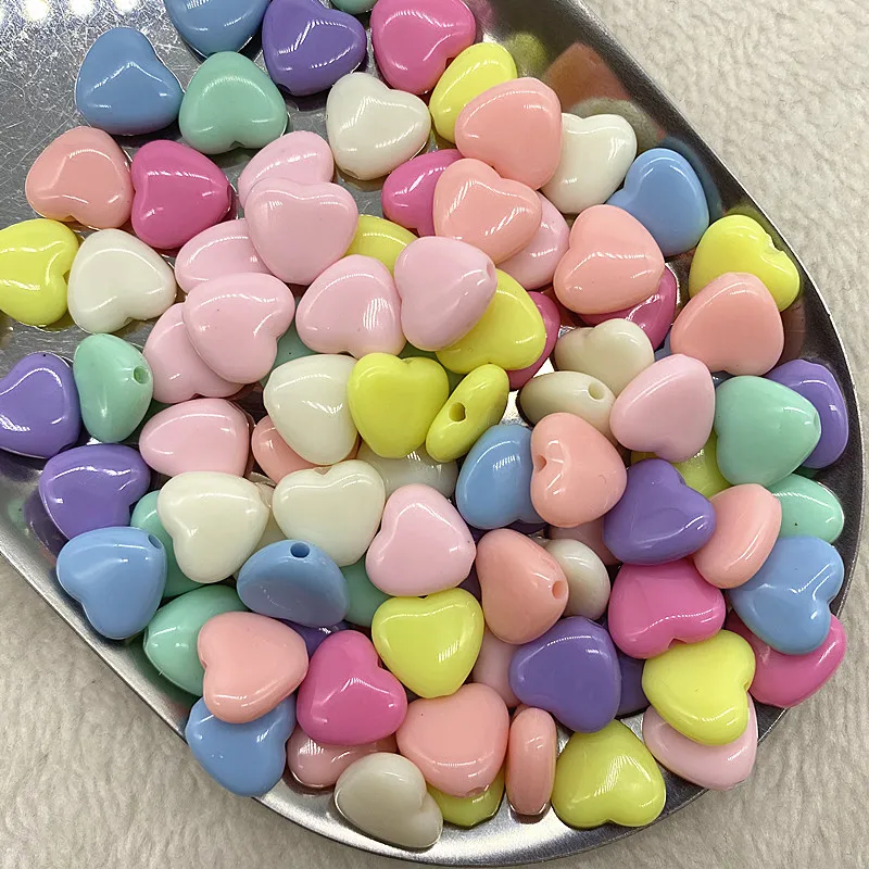 Les perles en acrylique couleur bonbon sont de nouvelles perles de bracelets à main. Elles mesurent entre 10 et 14mm et sont en forme de cœur. Ces perles sont de la marque DLV et sont parfaites pour créer des accessoires pour bracelet à main. Elles ont un trou droit pour faciliter leur utilisation.