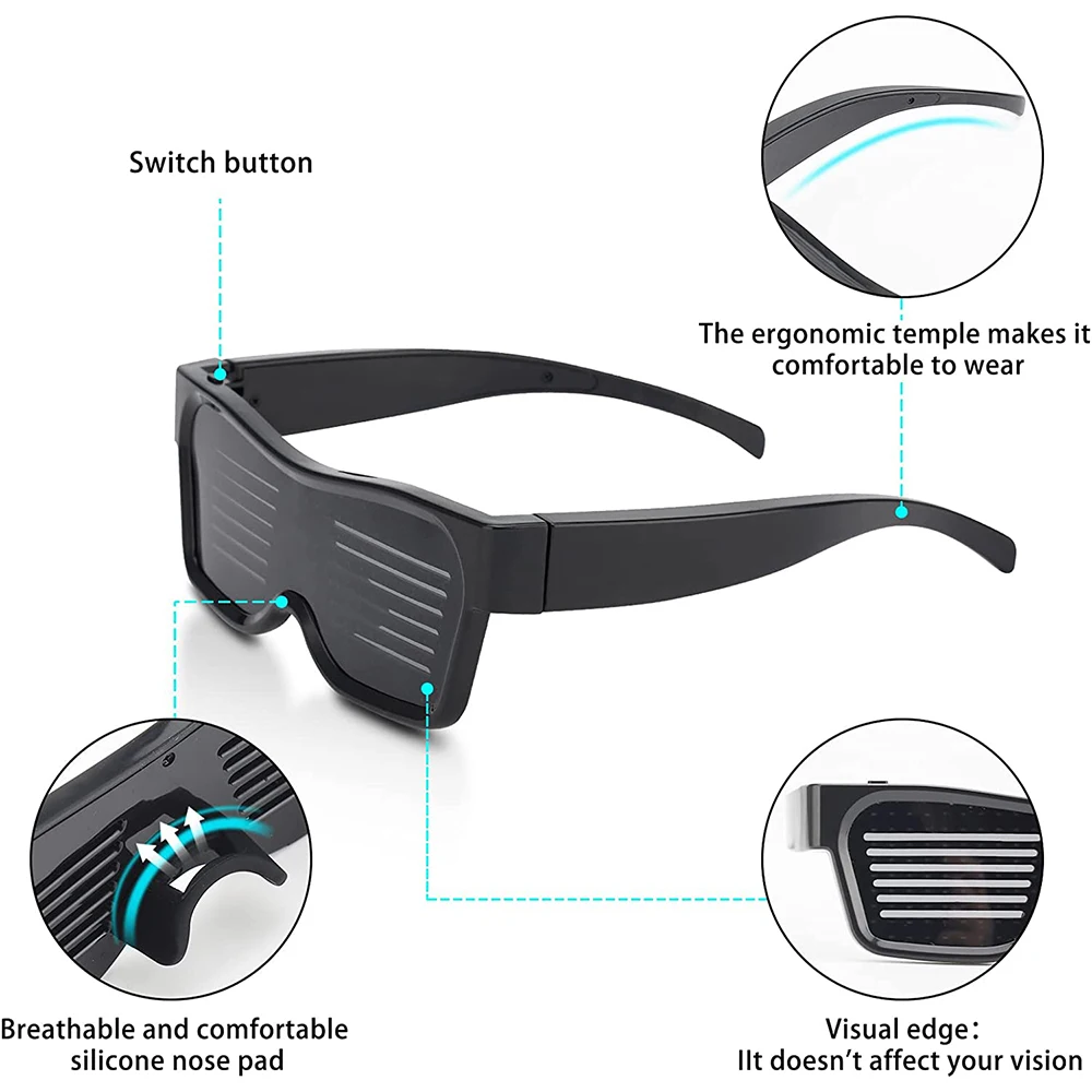 Les lunettes LED personnalisées avec texte de bricolage, graffiti, animation, etc. sont un produit extrêmement polyvalent. Grâce à leurs 32 animations et 11 images différentes, il est possible de créer un design unique pour chaque utilisation. Que ce soit pour une fête d’anniversaire, Halloween, Noël ou n’importe quel autre événement festif, ces lunettes LED attireront certainement l’attention.