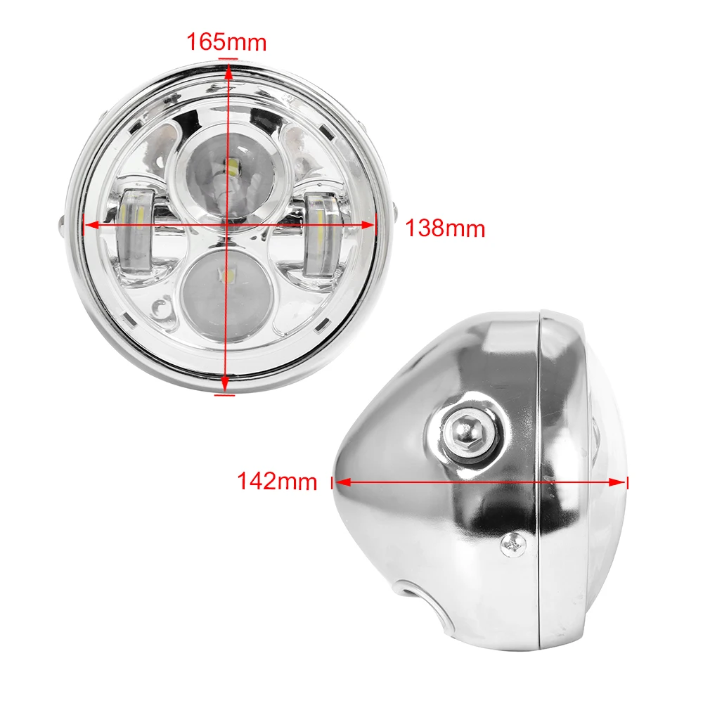 Le phare LED universel de moto de 6.5 pouces Hi & Lo est composé de 4 ampoules DRL. Il est spécialement conçu pour les Harley Sportster Cafe Racer. Fabriqué en métal et en plastique de haute qualité, ce phare est durable et facile à installer. Il offre une haute efficacité lumineuse grâce à sa lentille incurvée correcte et à sa haute transmission. Il fournit également un bon champ de vision lors de la conduite en mauvaise visibilité. Le phare est compatible avec la plupart des motos et vélos métriques, ainsi qu’avec les croiseurs, les Choppers et les coureurs de café.