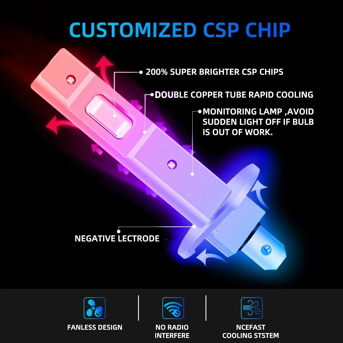 La conception sans ventilateur de ces ampoules de phare LED assure un fonctionnement silencieux, réduisant le bruit et améliorant l’expérience de conduite globale.