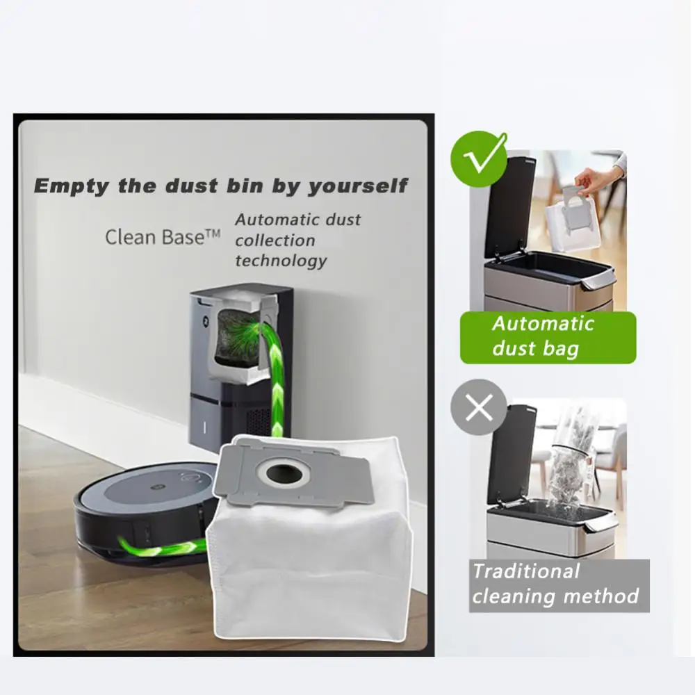 - [Modèle compatible]: Le sac à poussière de l’aspirateur est parfaitement compatible avec la série iRobot Roomba i & s i7(7150) i7 + i7Plus(7550), i8(8150) i8 + i8 peluche (8550), i3(3150) i3 + i3plush(3550), i6(6150) i6 + i6Plus(6550), s9(9150) s9 + s9 Plus(9550, 955020) Sac à poussière automatique Clean Base