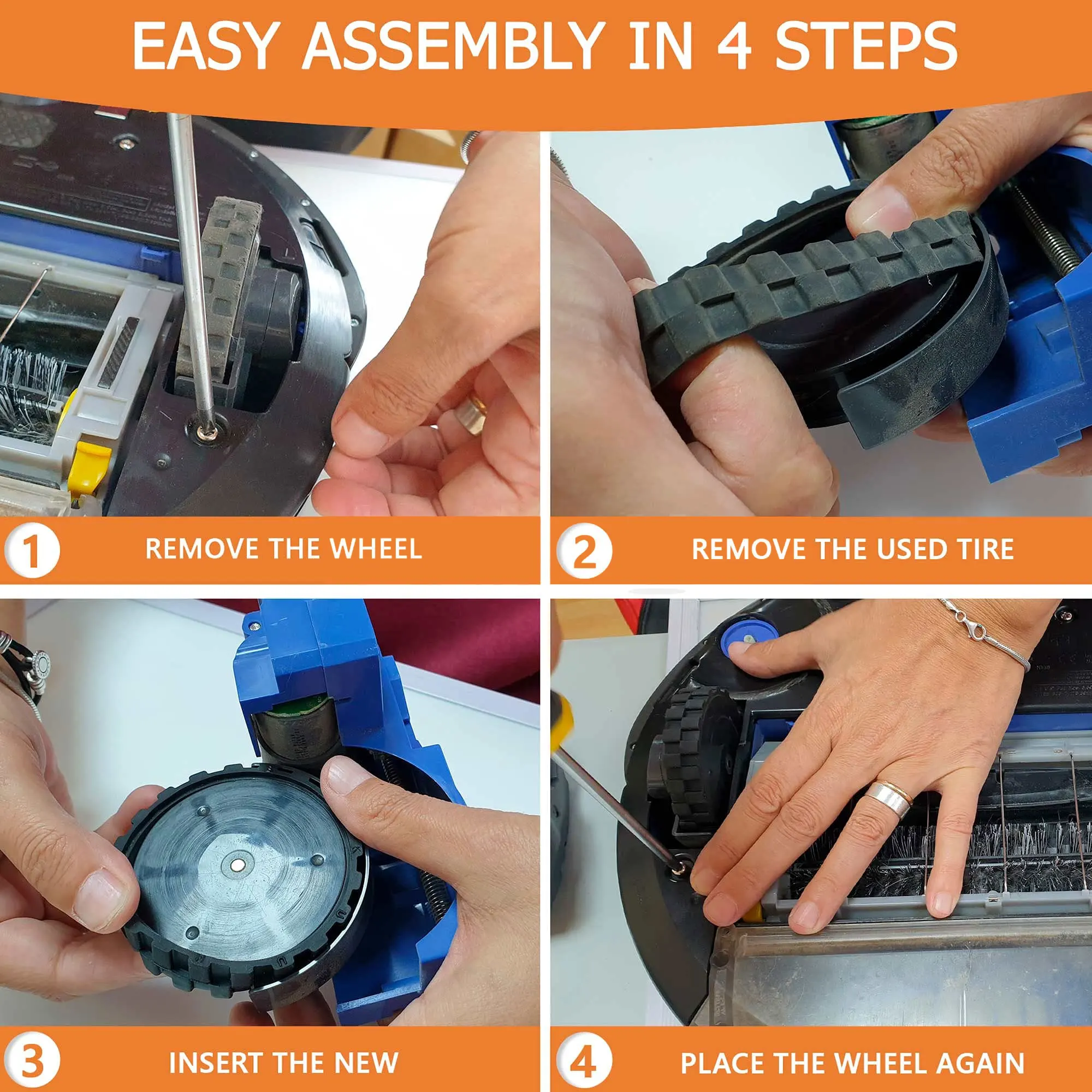 Le kit comprend tous les éléments nécessaires pour remplacer les pneus en caoutchouc et les roues de votre iRobot Roomba ou Roborock S5 Max. Ces pièces sont lavables, ce qui facilite leur entretien.