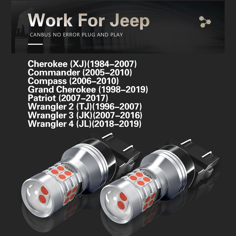 Les feux de freinage LED 3157 P27/7W T25 Canbus sont conçus pour les modèles Jeep suivants :