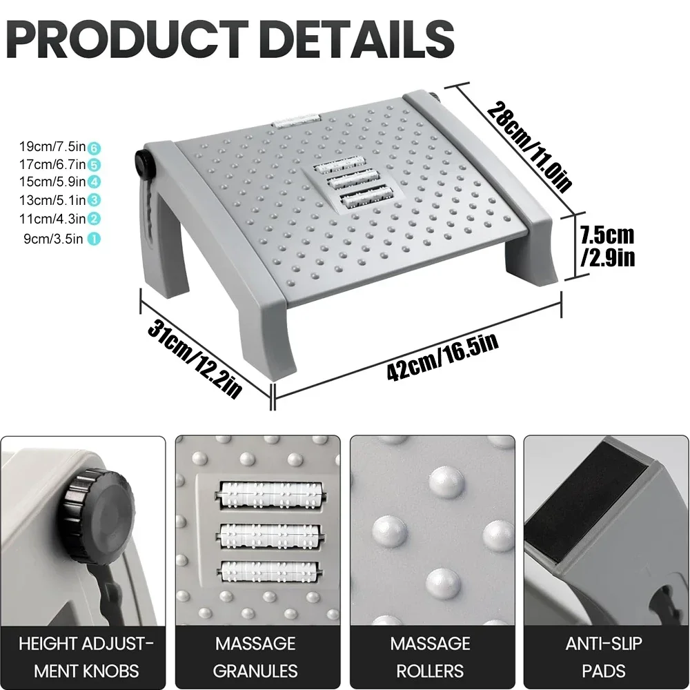 Le repose-pieds sous le bureau est un accessoire ergonomique qui offre un confort optimal pendant les longues journées de travail. Ce produit est réglable en hauteur avec 6 positions différentes, ce qui permet à chaque utilisateur de trouver l’angle approprié. Sa structure durable et robuste garantit une utilisation à long terme. De plus, ce repose-pieds favorise le surpoids des jambes, soulageant ainsi les douleurs et améliorant la circulation sanguine. Il est également facile à nettoyer et portable, ce qui en fait un choix pratique pour une utilisation quotidienne. Avec sa conception ergonomique, ce repose-pieds aide à maintenir une posture assise correcte et contribue à une vie quotidienne plus saine et dynamique.