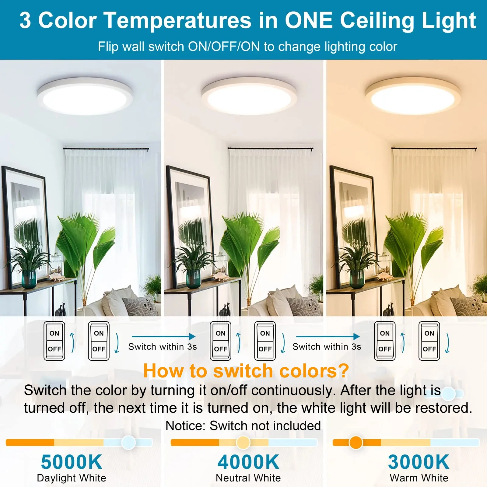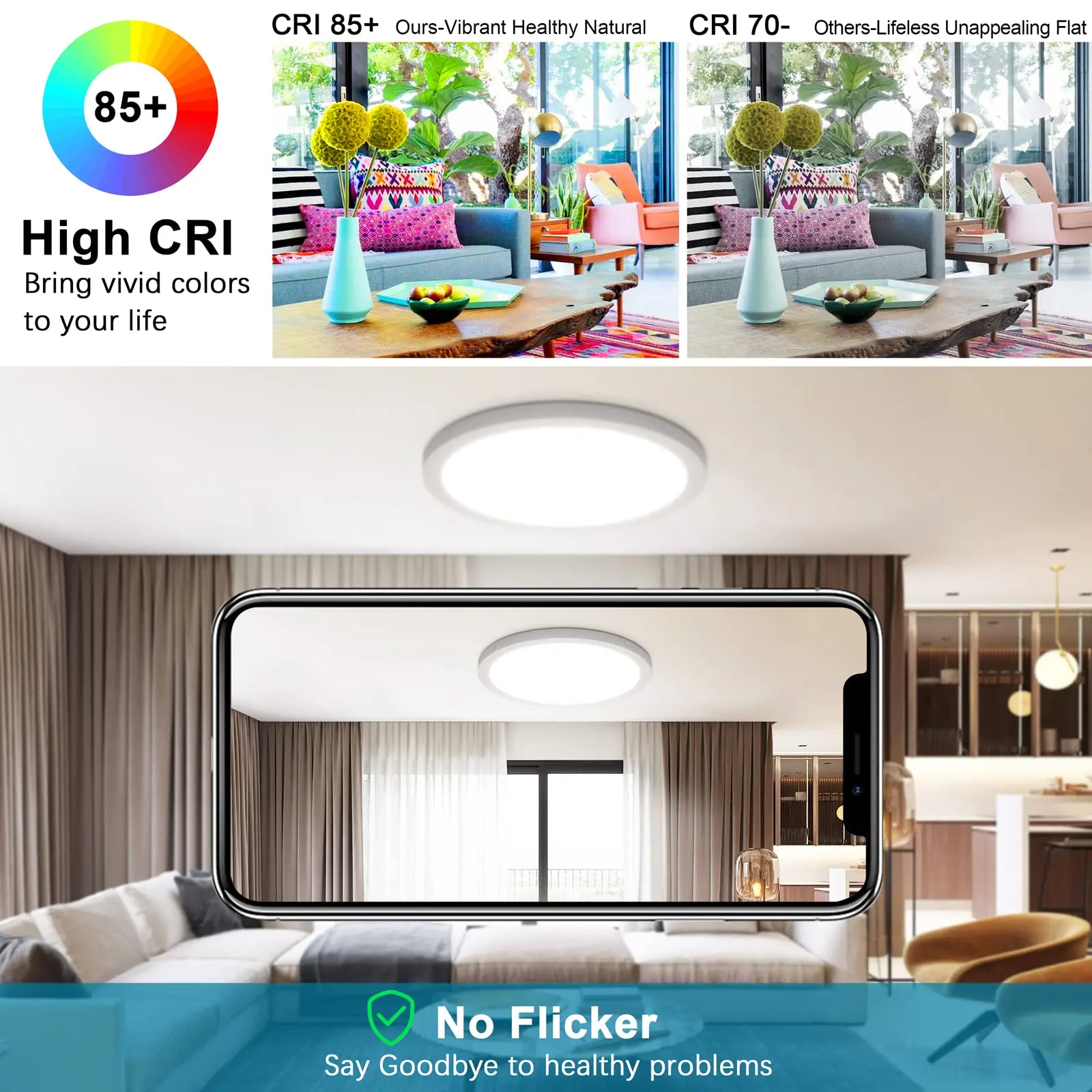 2. Lumineux et protège vos yeux. Les puces de LED de haute qualité fournissent une grande quantité d’uniforme, aucune lumière vacillante jusqu’à 6500 Lm (facultatif), il est beaucoup plus lumineux que la plupart des autres plafonniers pour la même taille. Gardez vos yeux sans éblouissement et sans éblouissement pour votre usage quotidien.