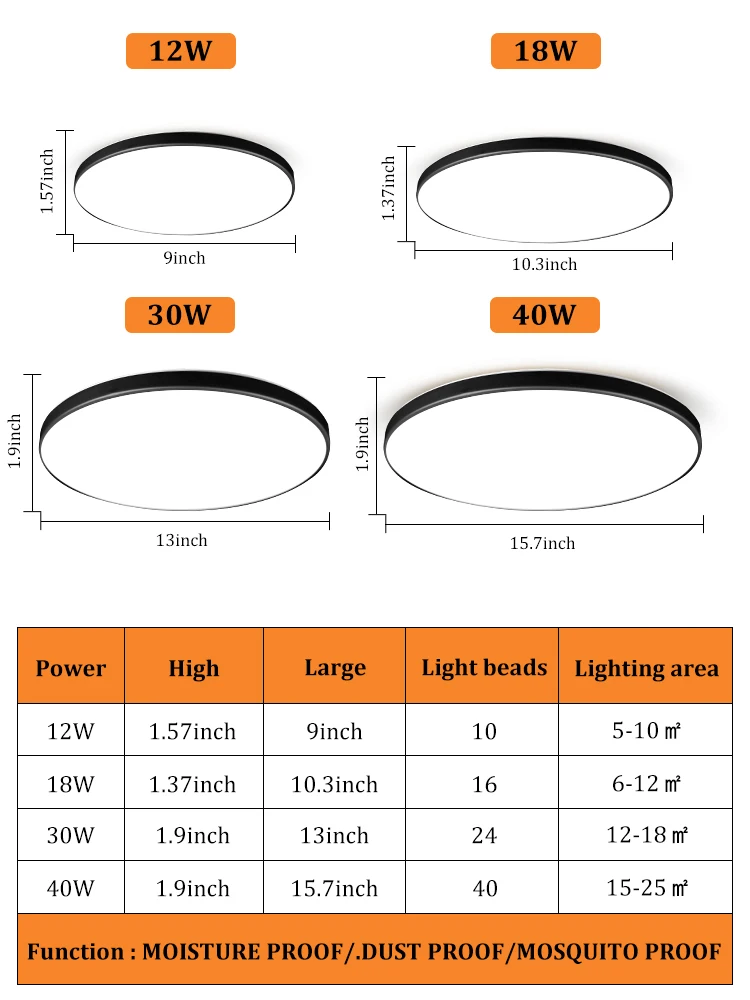 - Détails du produit: corps noir et blanc, ultra mince avec une hauteur de seulement 3.5cm pour la version 18W (5cm pour les autres watts)