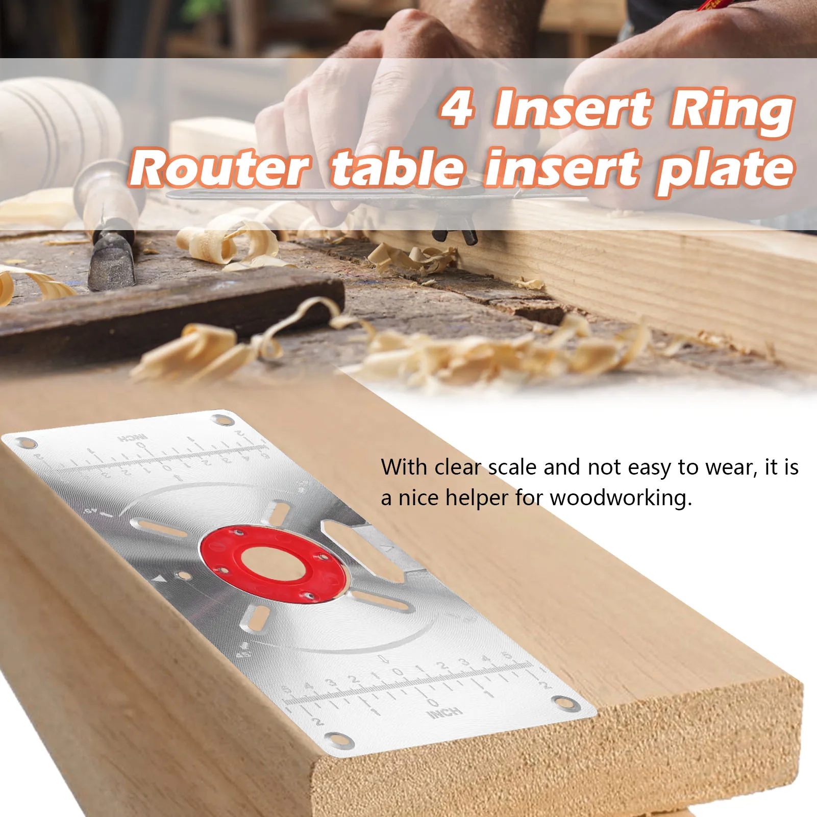 Un ensemble d’outils de travail du bois comprenant 1 plaque d’insertion de table de routeur, 4 anneaux d’insertion de routeur et des vis de fixation. La planche à rabat de type 2 est faite de plastique ABS, elle est légère et ne se déforme pas facilement.
