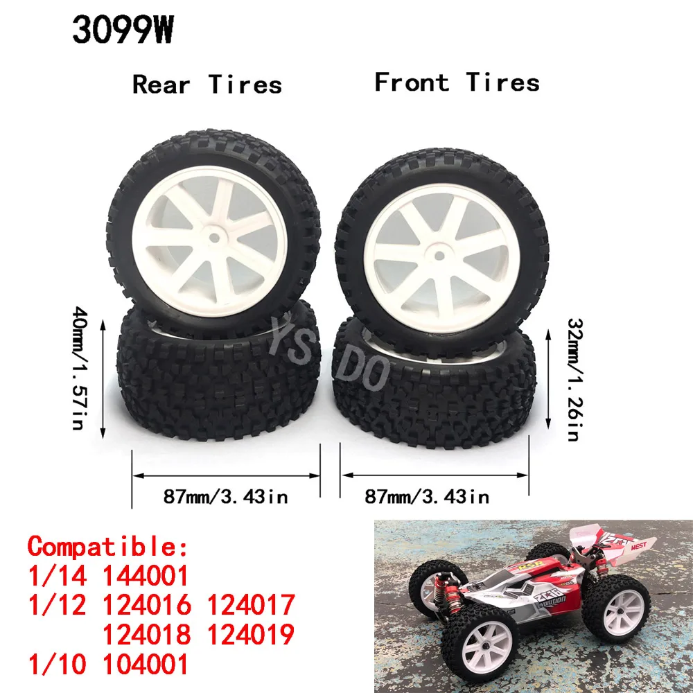 Pneus avant arrière 12 HEX pour voiture tout-terrain RC 144001 144010 124018 124019 124017 124016 Wltoys XK 1/12 1/14 1/16