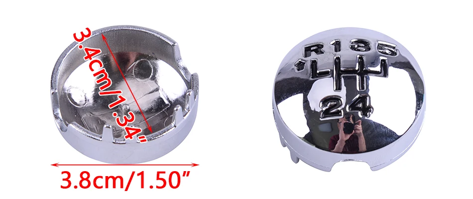 Le diamètre extérieur du pommeau de levier de vitesse est d’environ 3.8 cm (1.50 pouces) et le diamètre intérieur est d’environ 3.4 cm (1.34 pouces).