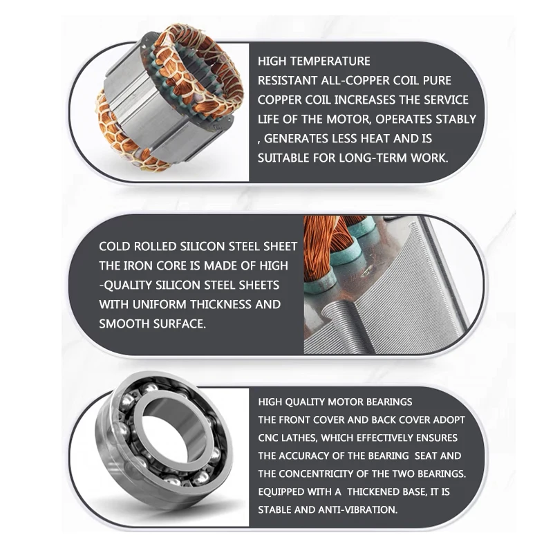 - Le matériau de la bobine en cuivre pur assure une conductivité optimale.