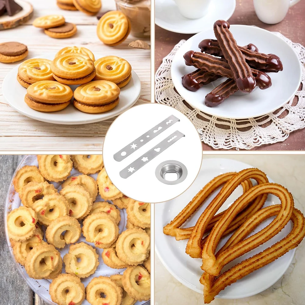 - L’accessoire de presse à biscuits offre huit options de motifs différents, vous permettant de préparer une variété de desserts visuellement attrayants.