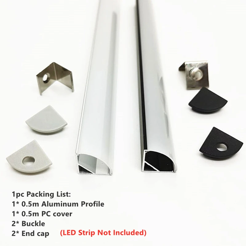 0.5m V-Shape LED Aluminium Profilé Armoire Coin Monté 90 Degrés Glow Hard Bar Lampe Canal Laiteux/Noir Couverture Bande Lumières